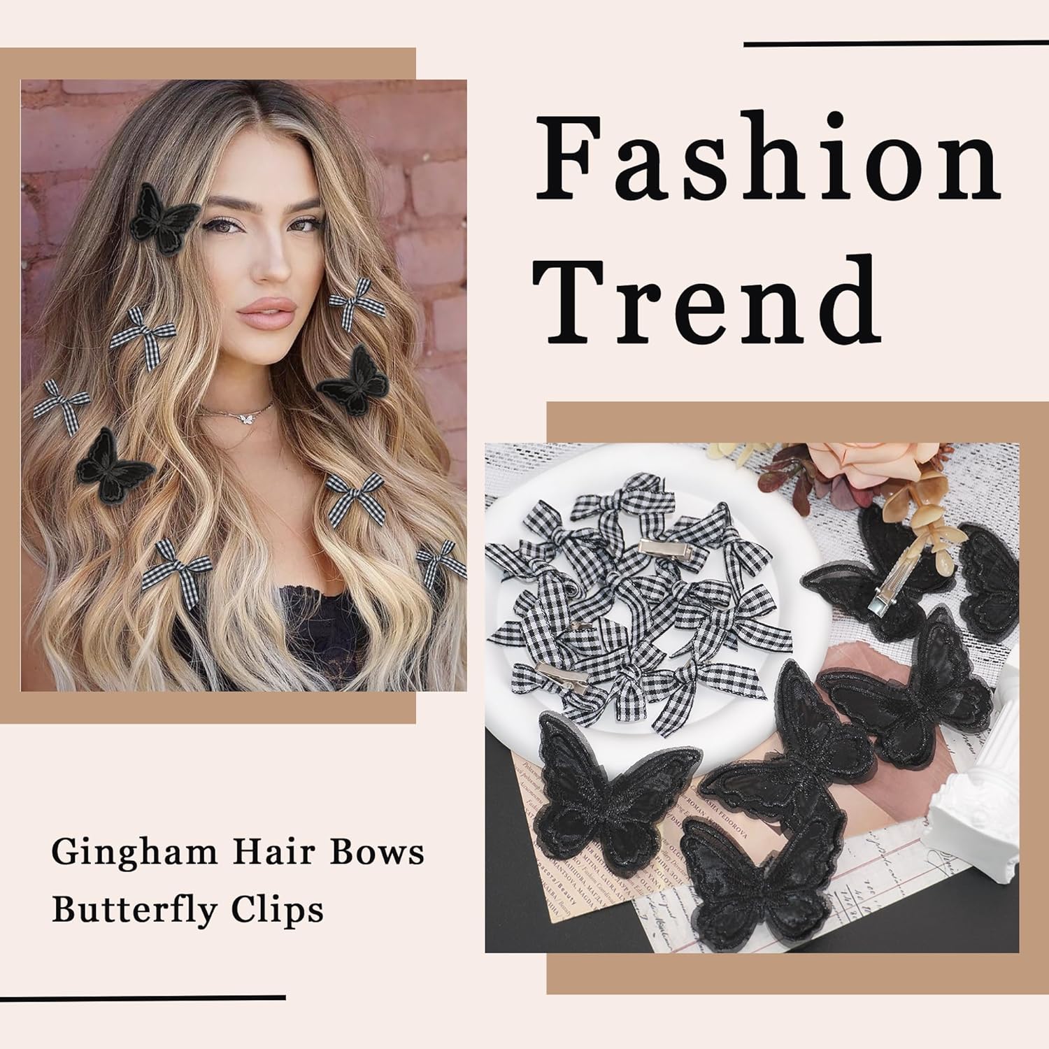 Package Includes: 12pcs black gingham hair,8pcs black butterfly clips for hair