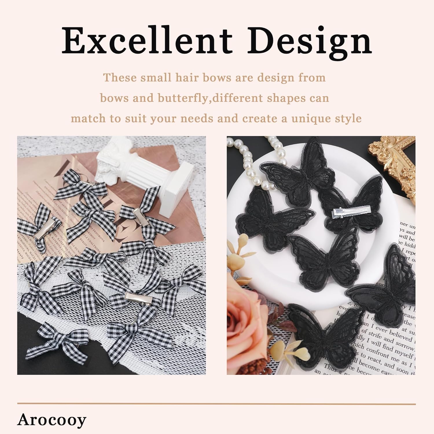 Bowknot and Butterfly Design – These black accessories are design from bows and butterfly,different shapes can match to suit your needs and create a unique style