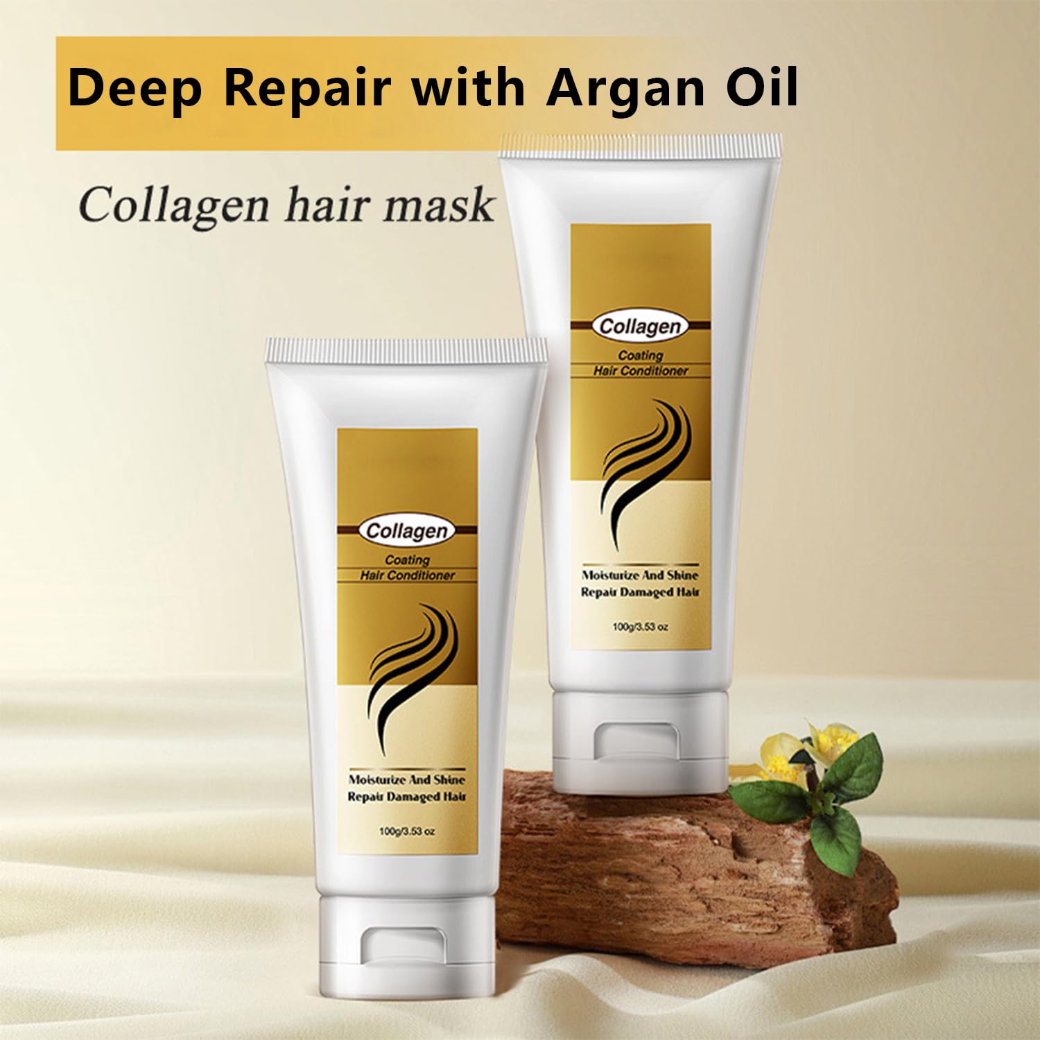 Collagen Hair Mask Deep Repair – Protein Hair Treatment with Argan Oil for Dry & Damaged Hair, Intensive Conditioning Hair Mask Essence for All Hair Types, 3.5oz