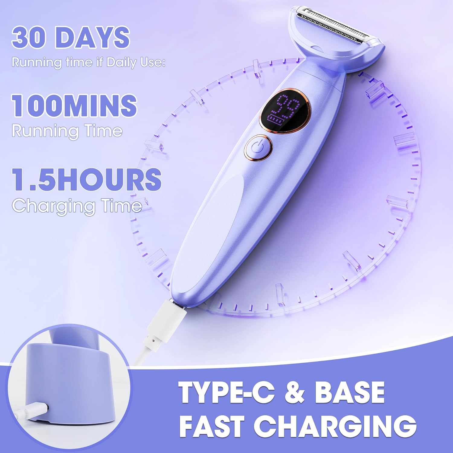 【Safe and Painless Shaving】: Engineered with micro-serrated to prevent bikini shaver burns and ingrown hairs. The electric razor for women provides a precise, smooth hair-shaving experience without any of the discomfort associated with skin pulling, irritation, injury or pain.