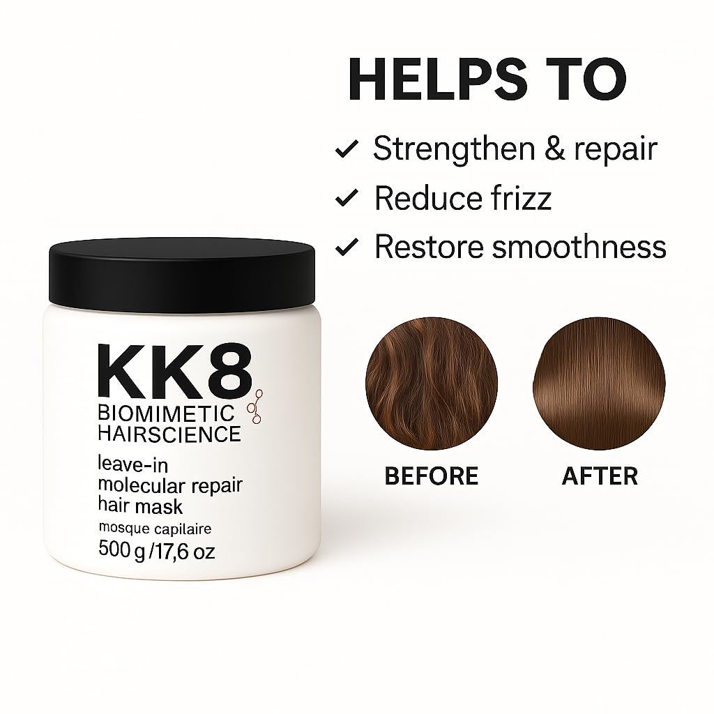 The KK8 Biomimetic Hair Mask is a revolutionary, leave-in molecular repair treatment