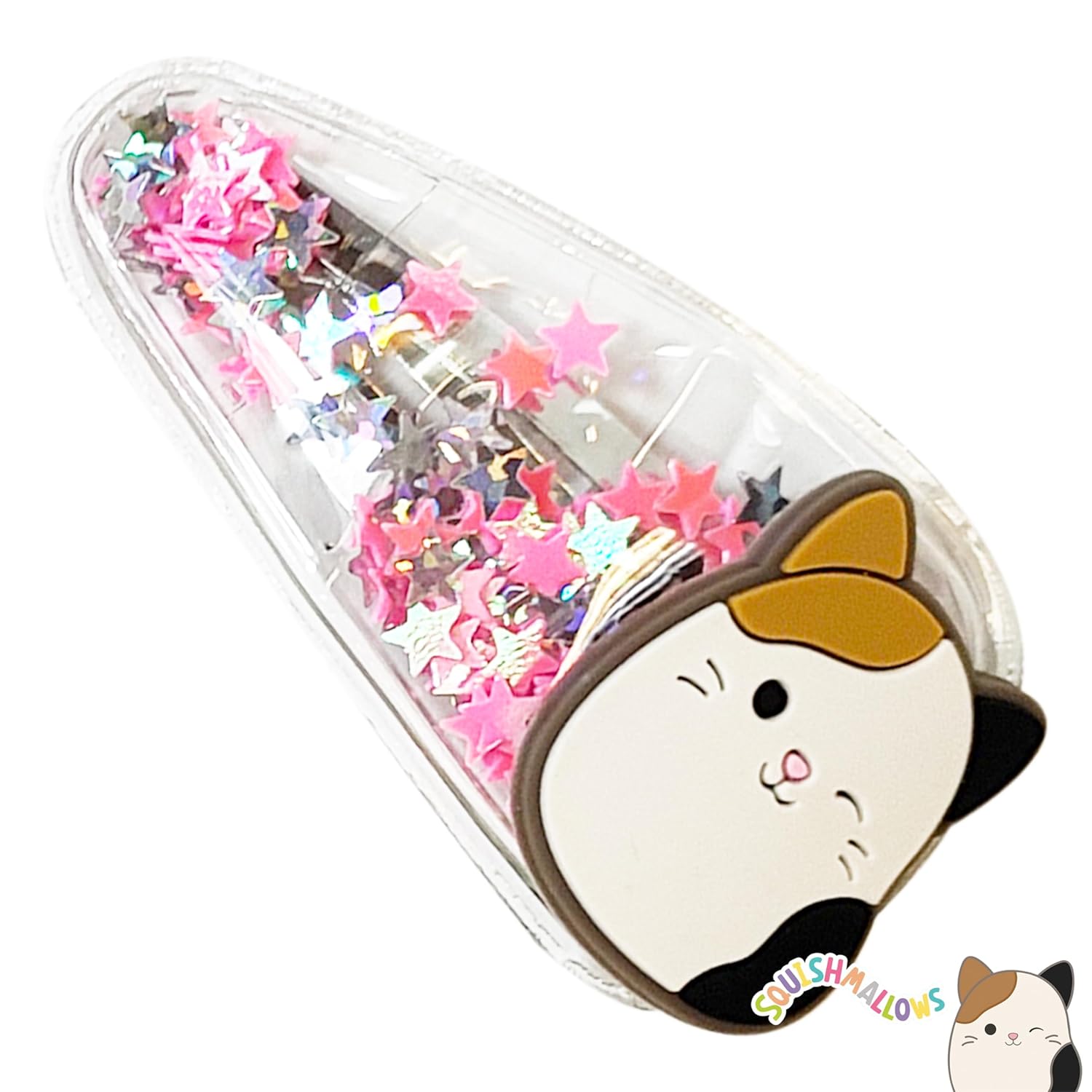 Cute Colorful Confetti Squish Hair clips for Girls with Squish Favorite character charm on each soft hair clip. This girl’s hair clips are an essential part of a fashionable girl’s 6pc multicolor to match every occasion. Suitable for all hair types.