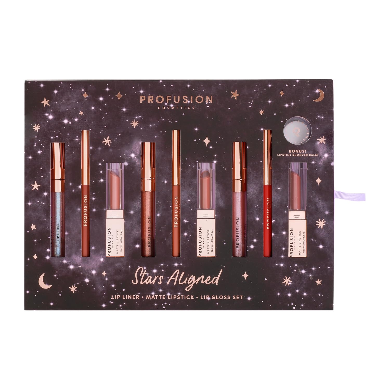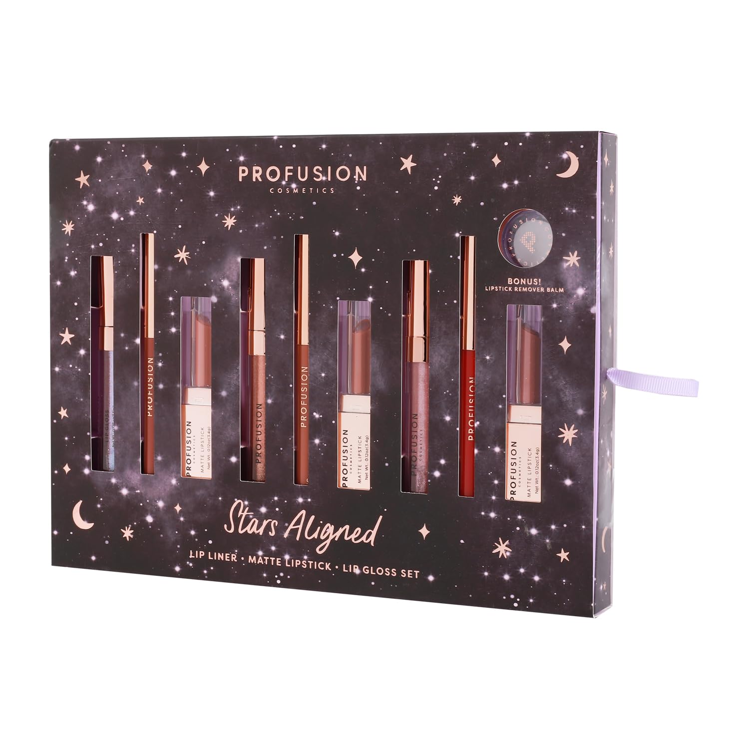 Profusion Cosmetics Stars Aligned Lip Set of 9 (Lip Liner, Matte Lipstick & Lip Gloss Set)