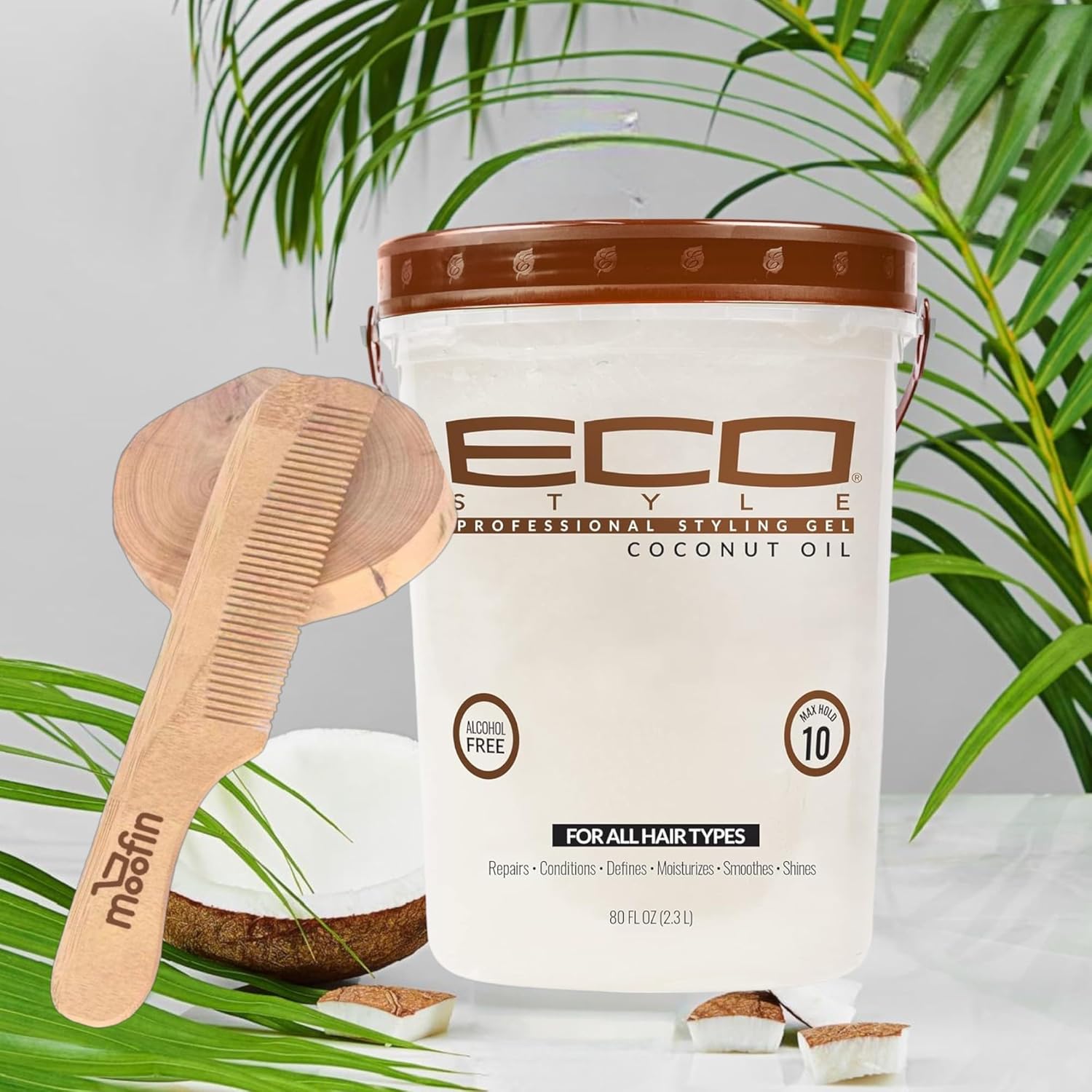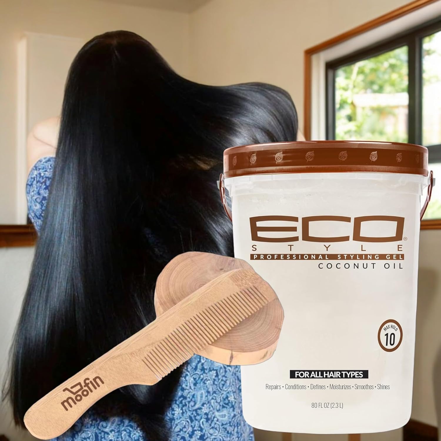Eco Style Coconut Oil Styling Gels, Strong Hold Hair Gel & Hydration, Nourish And Shine Hair Products For All Types, Prevents Breakage, Promotes Scalp Health, Bundle With Wooden Comb – 2Pack