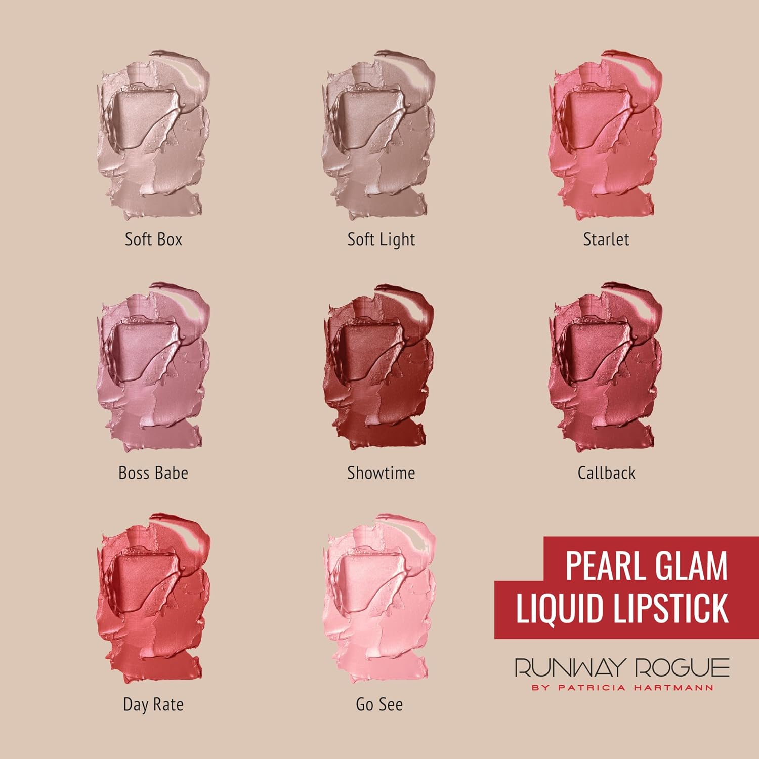 Runway Rogue Pearl Glam Shimmer Liquid Lipstick, Long Wear Light-Pink Lip Color with Gold and Rose Shimmer, Go See