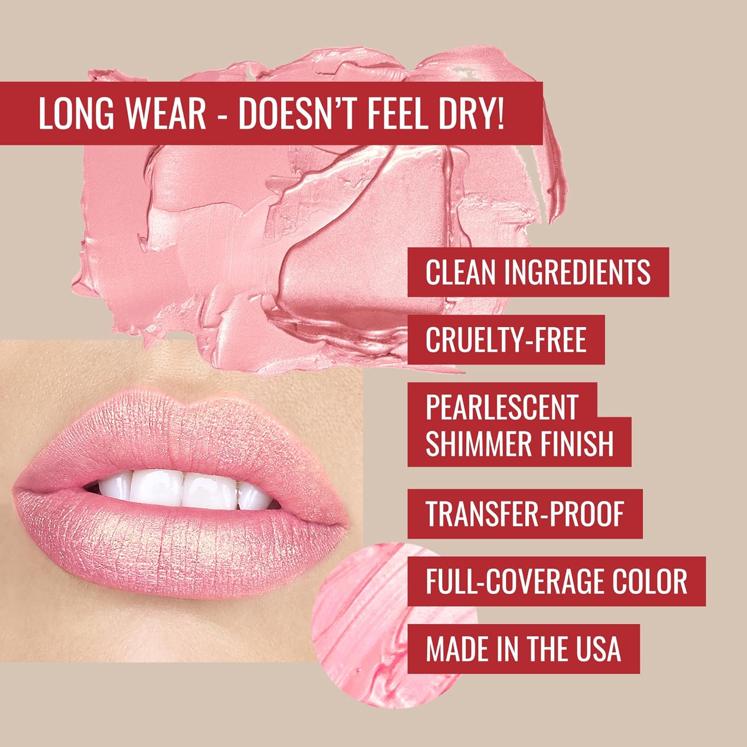 LASTING & TRANSFER-PROOF: After it sets, this light-pink liquid lipstick is ready to stay put. Get pro full-coverage color without worrying that your pearlescent lipstick will transfer to your coffee cup. Oil-based foods or lip toppers may affect the long wear.