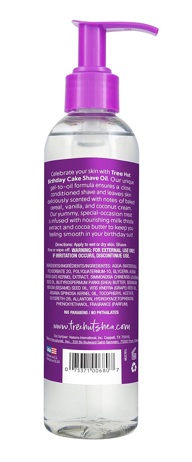 Tree Hut Bare Birthday Cake Hydrating & Moisturizing Shave Oil, 7.7 fl oz.