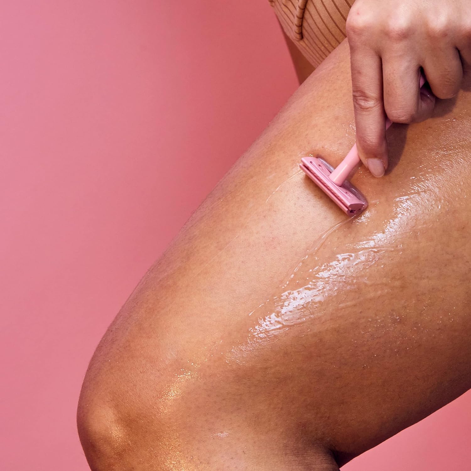 This Bare Birthday Cake Shave Oil is made with natural shea butter, vitamin E, soothing oat kernel extract, and a blend of natural oils like argan, grapeseed, jojoba, and sesame oils. Natural oils condition skin to help prevent dryness and balance hydration for a healthy glow, perfect for those prone to razor bumps, ingrown hairs, or skin irritation from shaving.