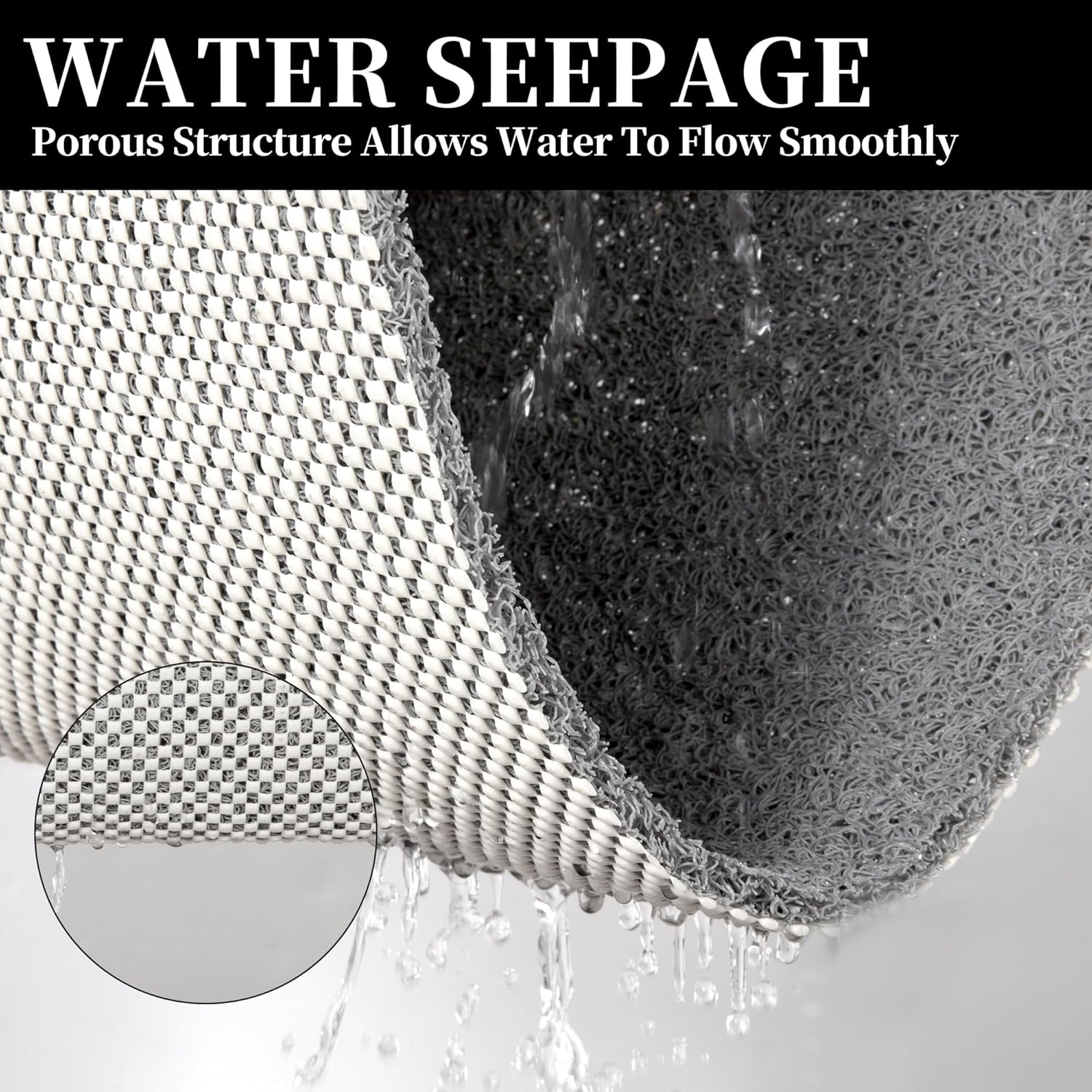 Quick Dry Structure — Carefully designed with a porous faux loofah design, the foam at the top can be easily rinsed off. This improves air circulation and expels excess water, allowing the mat to dry quickly.