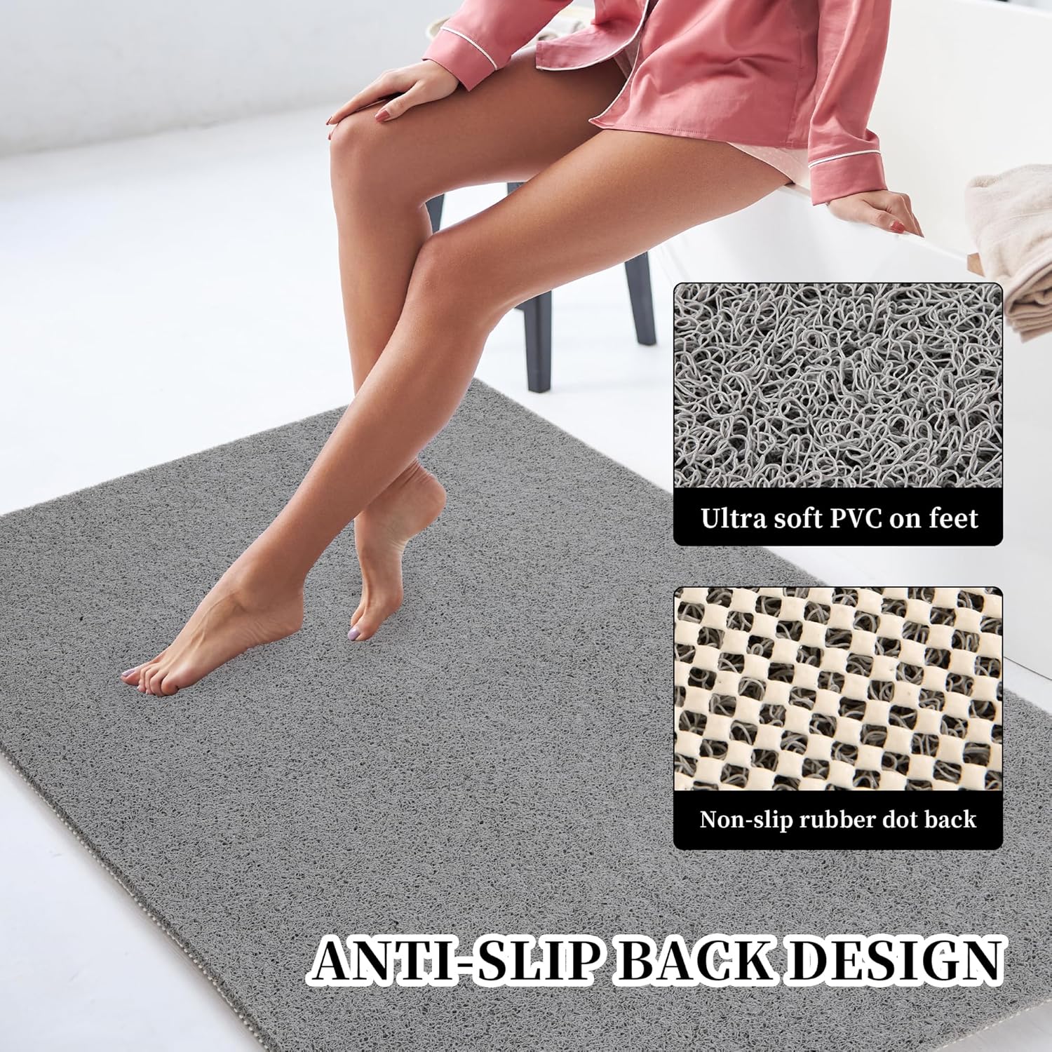 Durable and Odorless — The non-slip bathroom mat is made of high quality material, durable and odorless. The pebble texture on the surface of the mat makes feet feel soft and comfortable, perfect for your family.