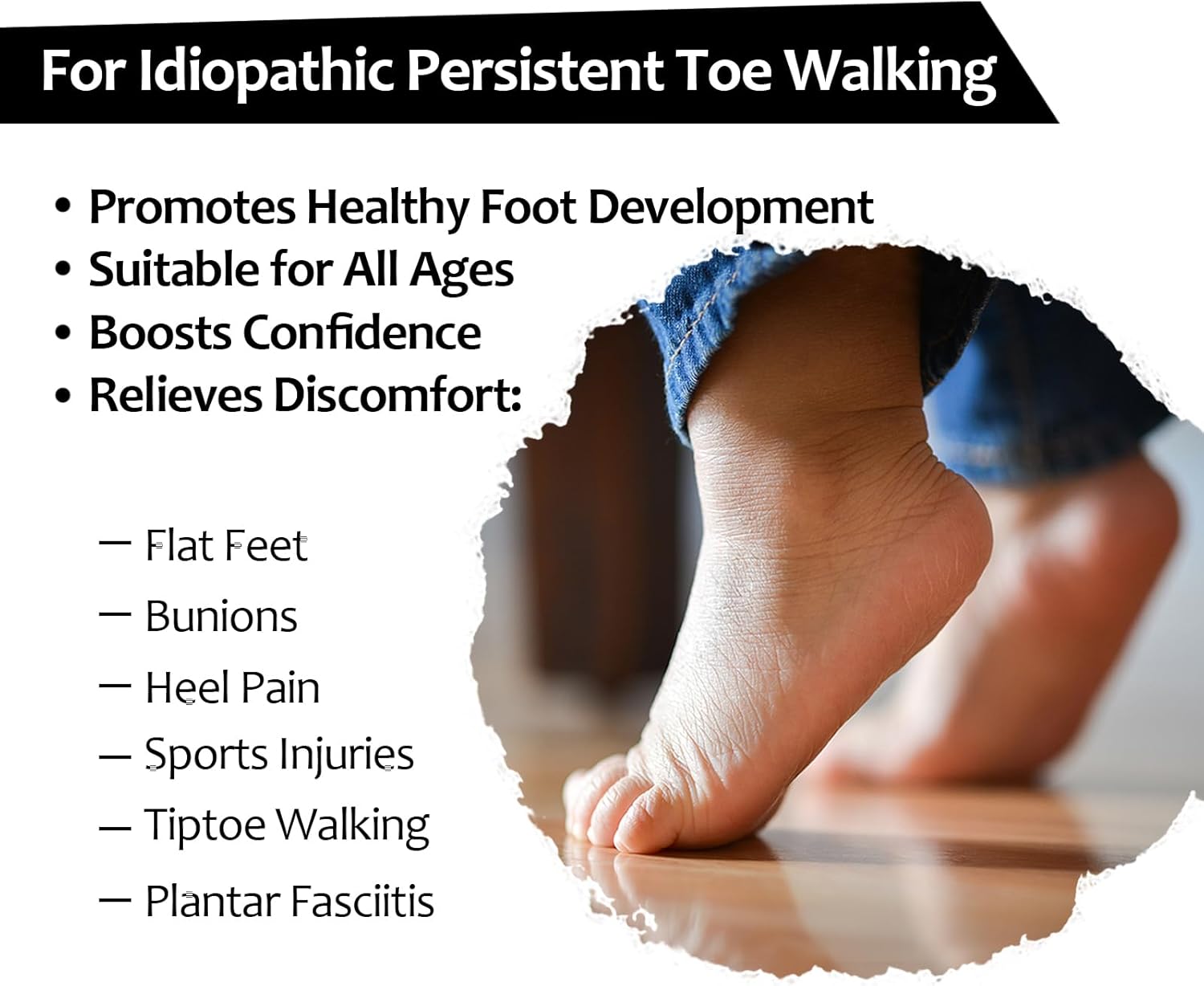 ❤How to encourage kids toe walk with their heels down?❤ When children are first starting to learn to walk confidently, they may tiptoe, and it may then become a habit. The rigid carbon fibre insert to help improve the walking of those with idiopathic toe walking. They make the footwear more rigid across the ball of the foot (metatarsophalangeal joints), increasing the lever arm from the toes to the ankle joint to induce a subtle force to get the heel down to the ground with more ease.