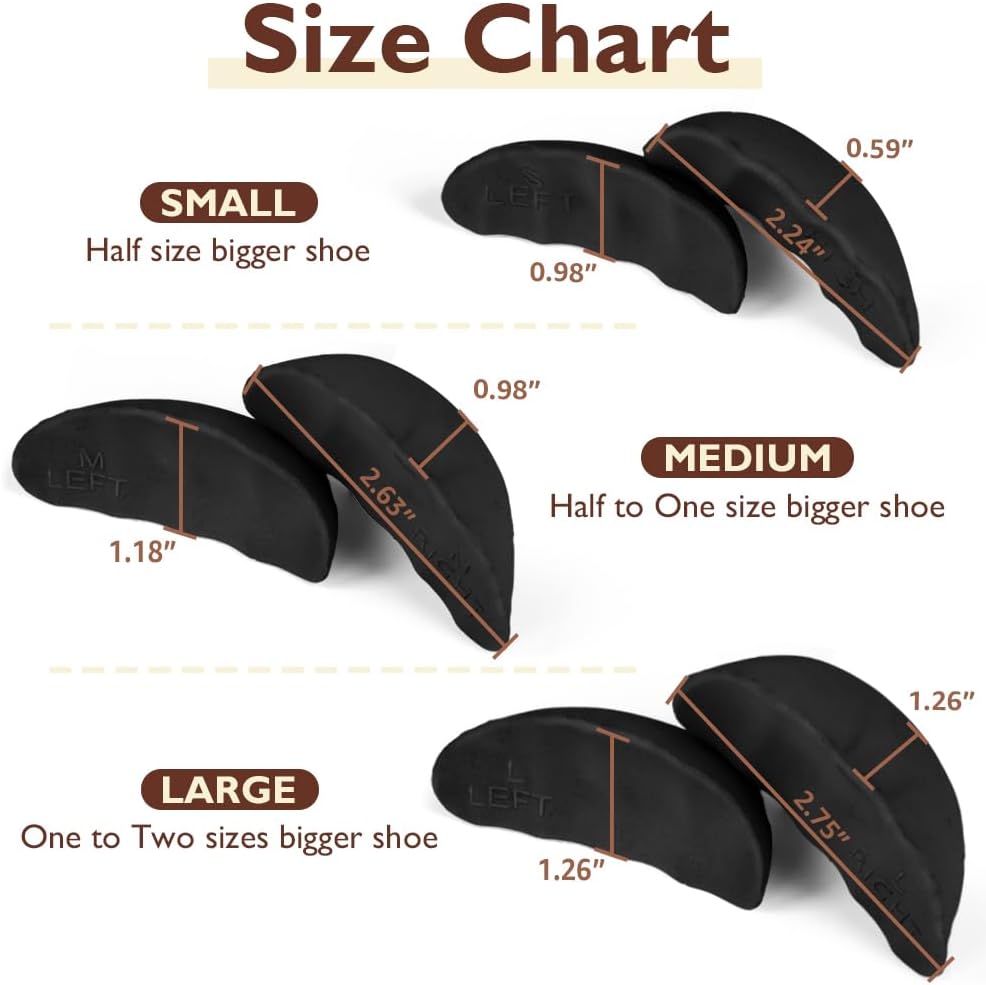 Anti-slip Shoe Filler Inserts: These inserts can be easily adjusted to fit different shoe to ensure the ideal fit, available in three sizes, don’t worry about your shoes being too loose again.