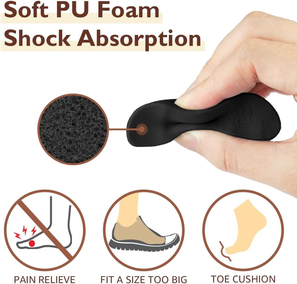 Fills Shoe Space: The ergonomic shape makes it comfortable to wear even for people with sensitive toes. Used with double-sided tape to better fix the inserts in one position.