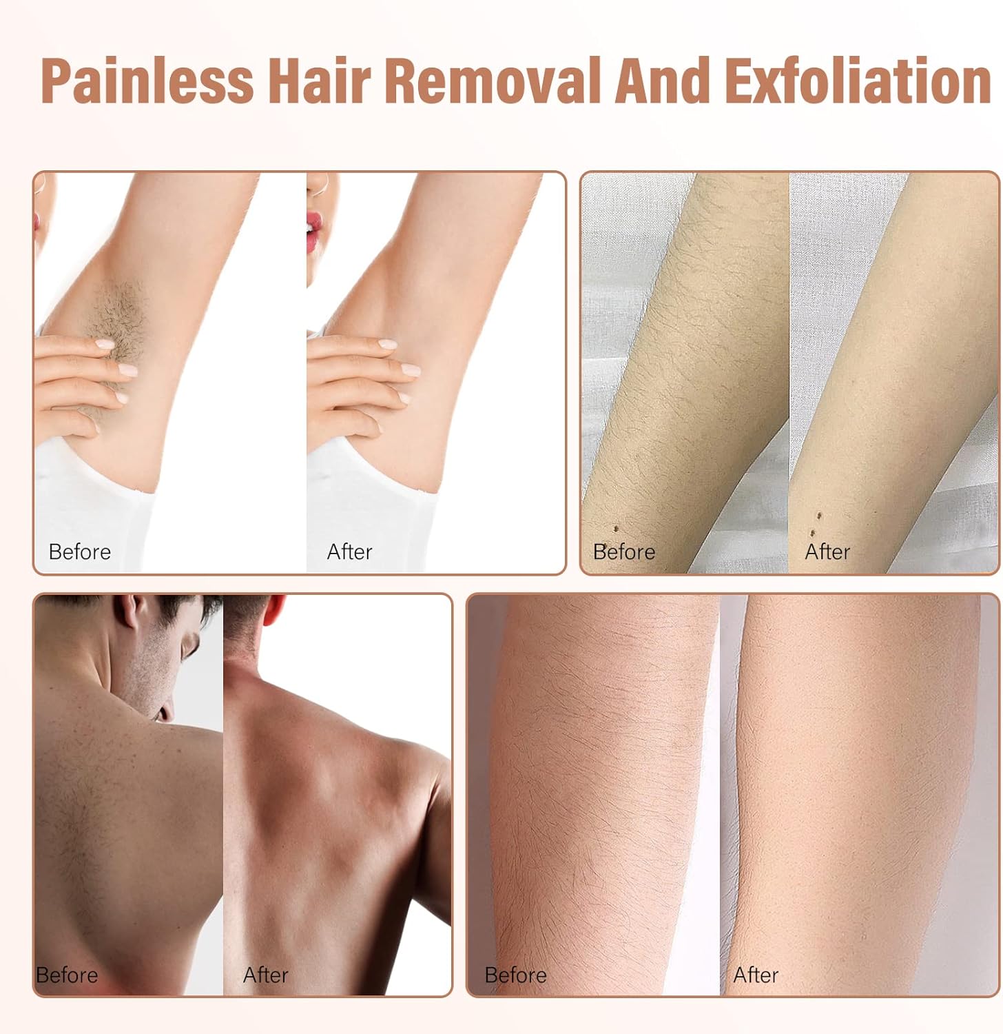 【Wide Application】Equally applicable for men & women. The hair eraser can instantly and effortlessly buffs away all types of hair on arms legs back without pain. (Don’t use it too hard on skin.)