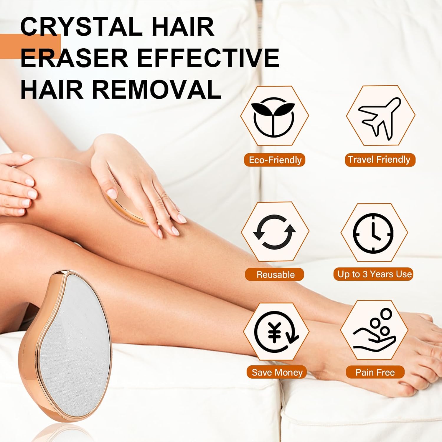 【Magic Crystal Hair Eraser】Newly upgraded crystal panel, faster hair removal than the old model. The crystal hair eraser can be used without additional shaving cream. You just need to rub gently on your skin in a circular motion, then leaving your silky smooth skin & hair-free body.