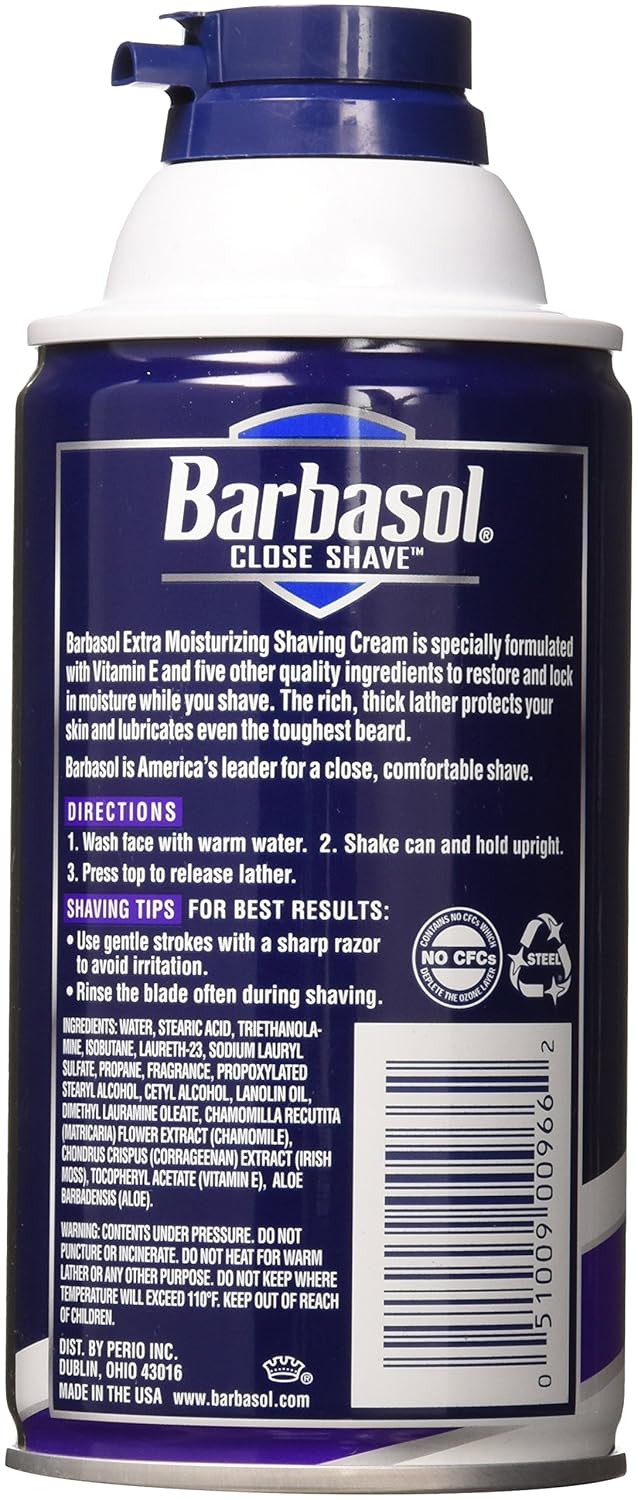 Specially formulated with vitamin e and five other quality ingredients, Barbasol extra moisturizing shaving cream restores and locks in moisture for a close, comfortable shave.