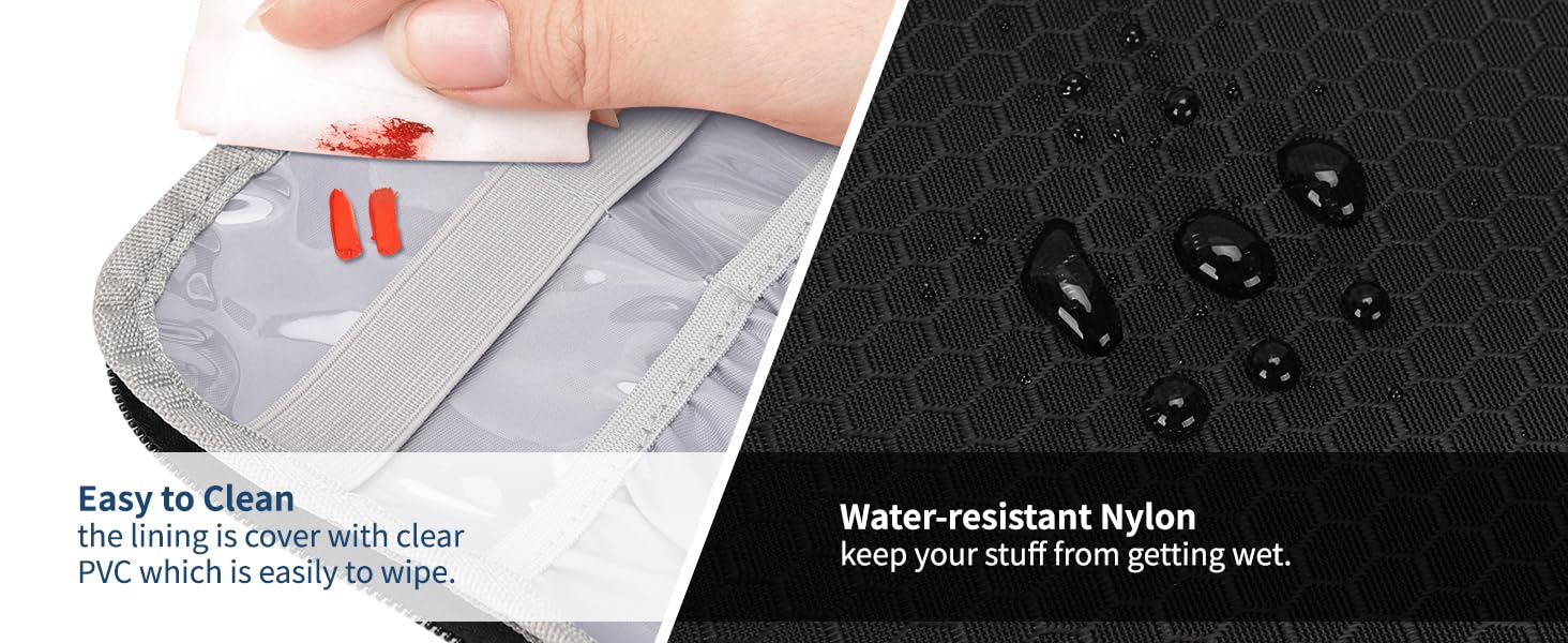 Water-resistant Material — The small toiletry bag’s premium quality material protects your toiletries and shaving supplies from splashed water.