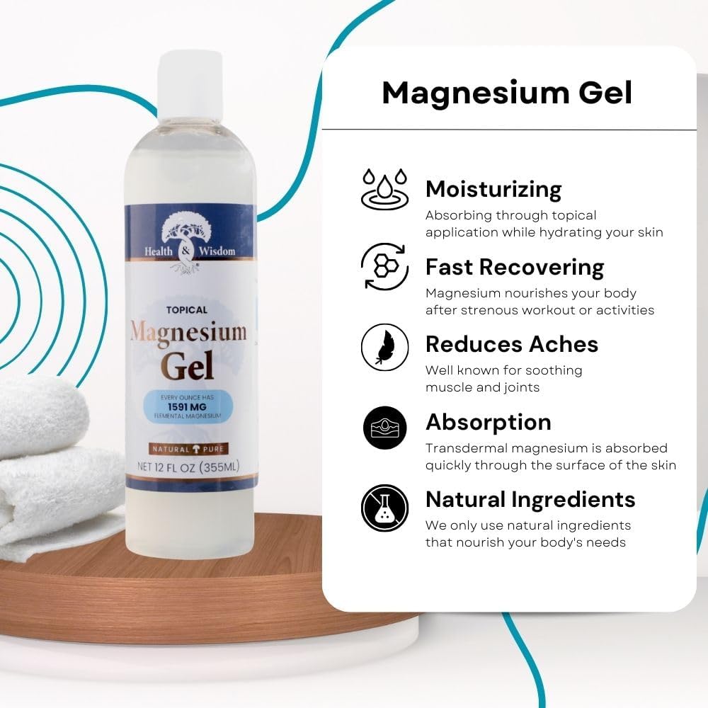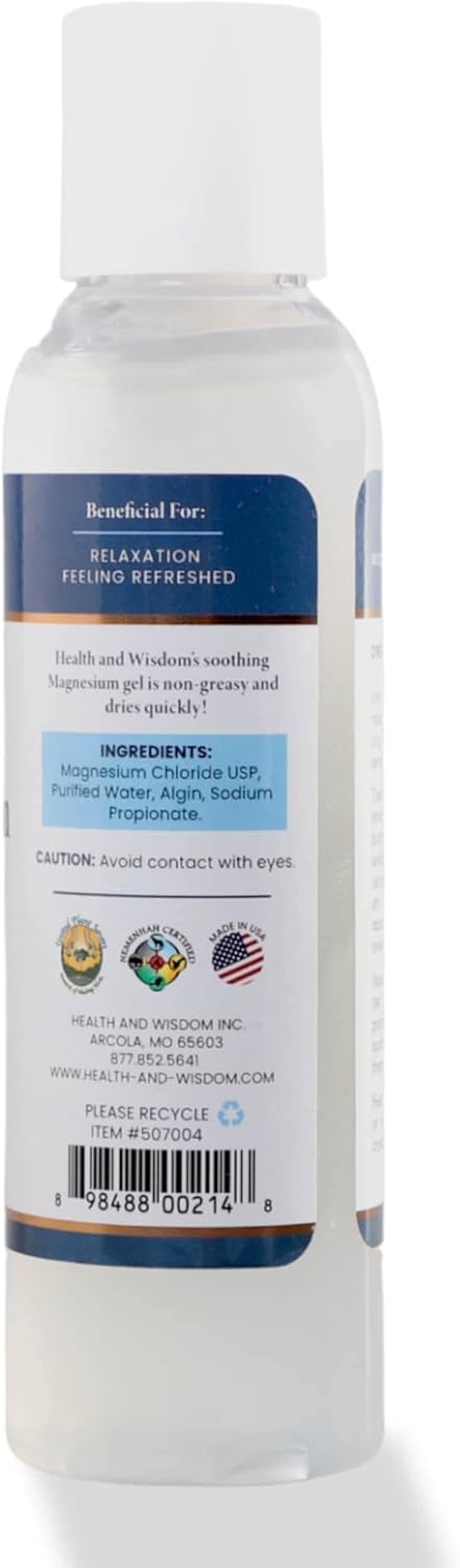 Health and Wisdom Topical Magnesium Gel with Seaweed Extract – Magnesium Gel Topical for Muscles, Magnesium Topical Gel, Gel Magnesium, All Natural Magnesium Gel, Magnesium Chloride Gel – 4 Fl Oz