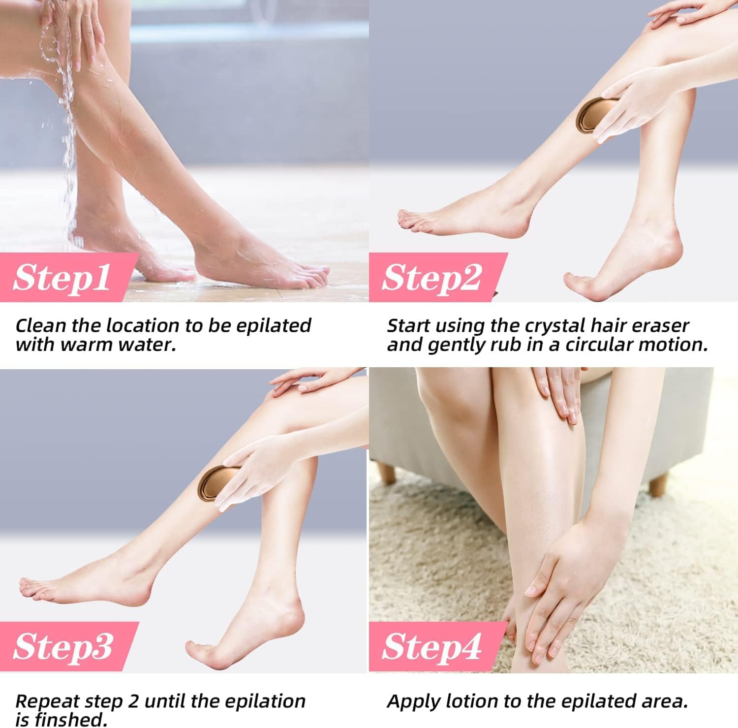 ★Warm Tips: Don’t use Crystal Hair Eraser too hard on the skin. If you have sensitive skin, try Hair Eraser on your arms/legs before using it on other sensitive areas. We do not recommend using the Hair Removal Device on sensitive skin such as the face or underarms as the skin is thin and delicate, since it may cause irritants. Recommended use: once every 1-2 weeks. Wet the hair removal area before use for better hair removal. We recommend usage on dry or damp skin after a shower and use a gentle moisturizer after Hair Removal, your skin will be super soft. After each use epilator, rinse with running water to brush away any debris: hair, and dead skin, and store in a dry place. Crystal Hair Eraser is so useful. The rate of hair growth slows down as the number of uses increases. You will gradually see changes if you keep using it for more than a month.