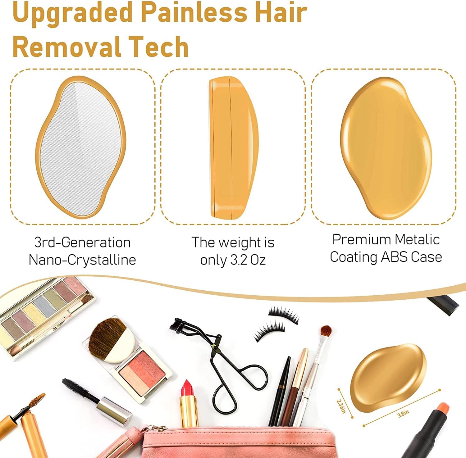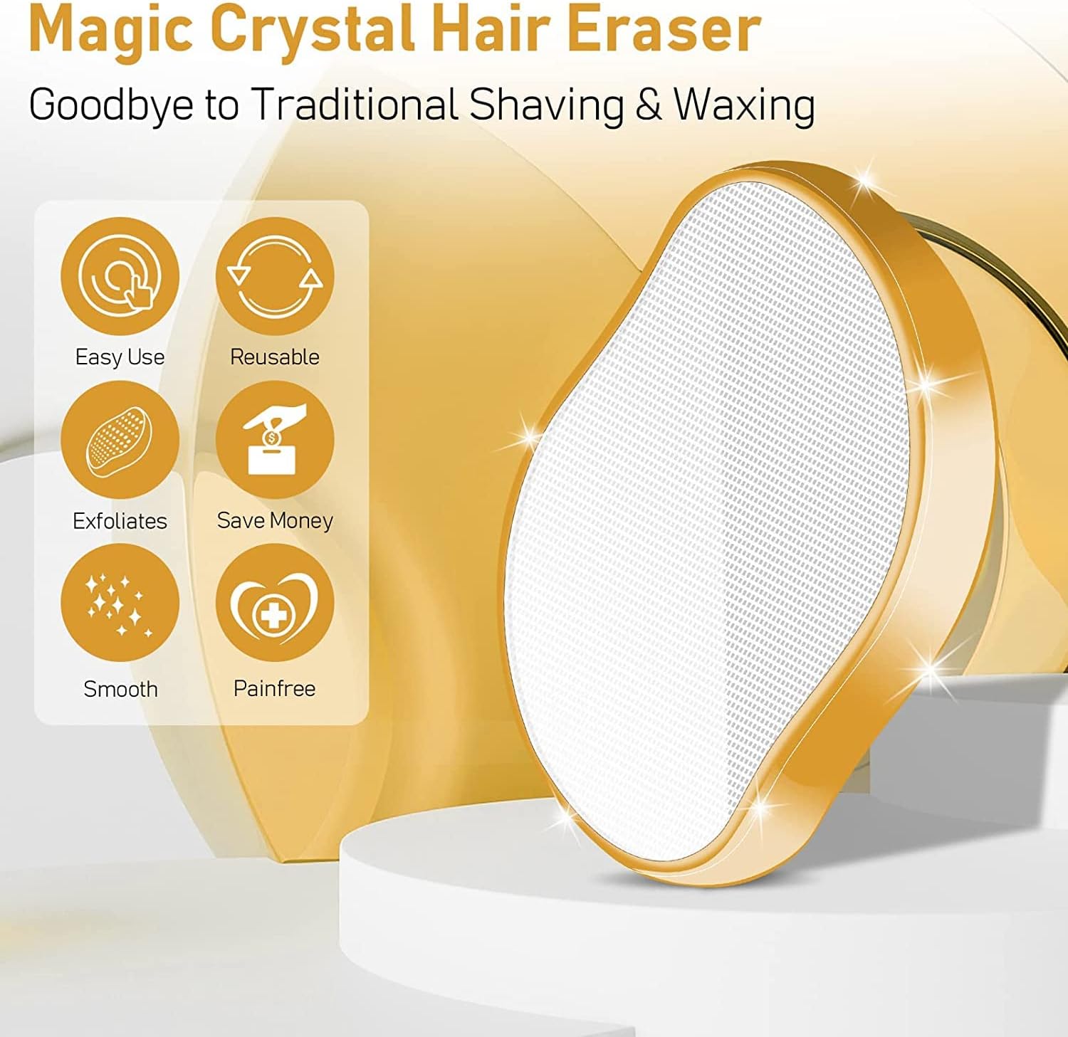 Crystal Hair Eraser for Women and Men, Epilator Device 3rd Gen 2023, Reusable Crystal Hair Remover Magic Painless Exfoliation Hair Removal Tool, Magic Hair Eraser for Back Arms Legs (Gold)