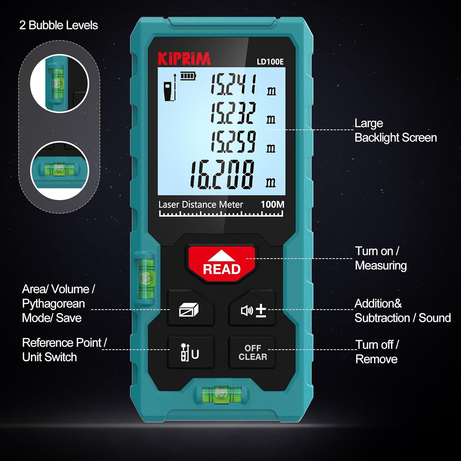 【EFFICIENCY BOOST】Say goodbye to manual measurements and tedious calculations. The Kiprim Laser Distance Measurer simplifies complex tasks, saving you time and effort on every project.