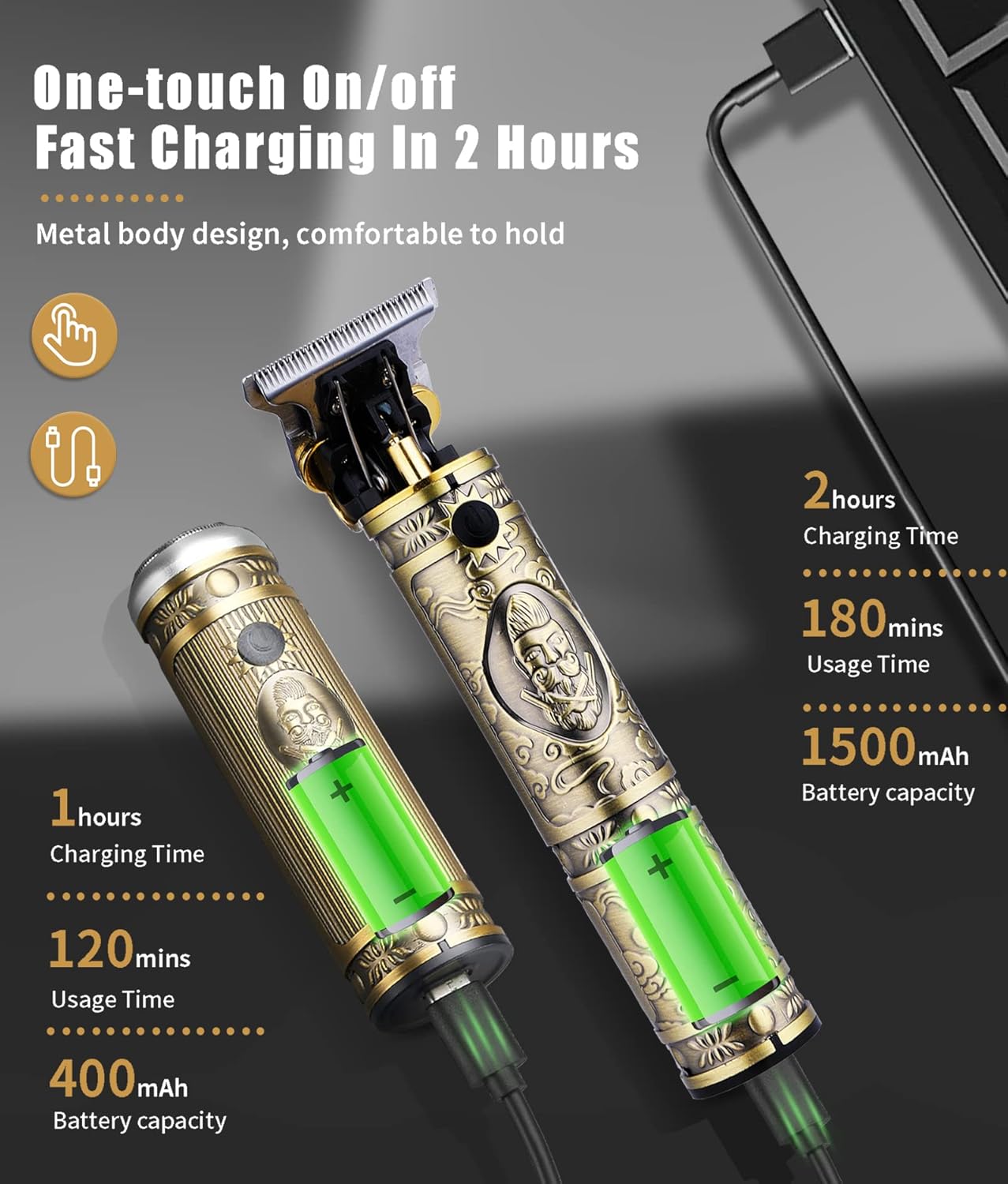 【ERGONOMIC BODY DESIGN】Hair clippers kit using retro punk metal body design, it is exquisite and compact. Ergonomic and comfortable to hold. Portable anywhere, the Hanging Professional Men’s Trimmer is perfect for home, work or travel.