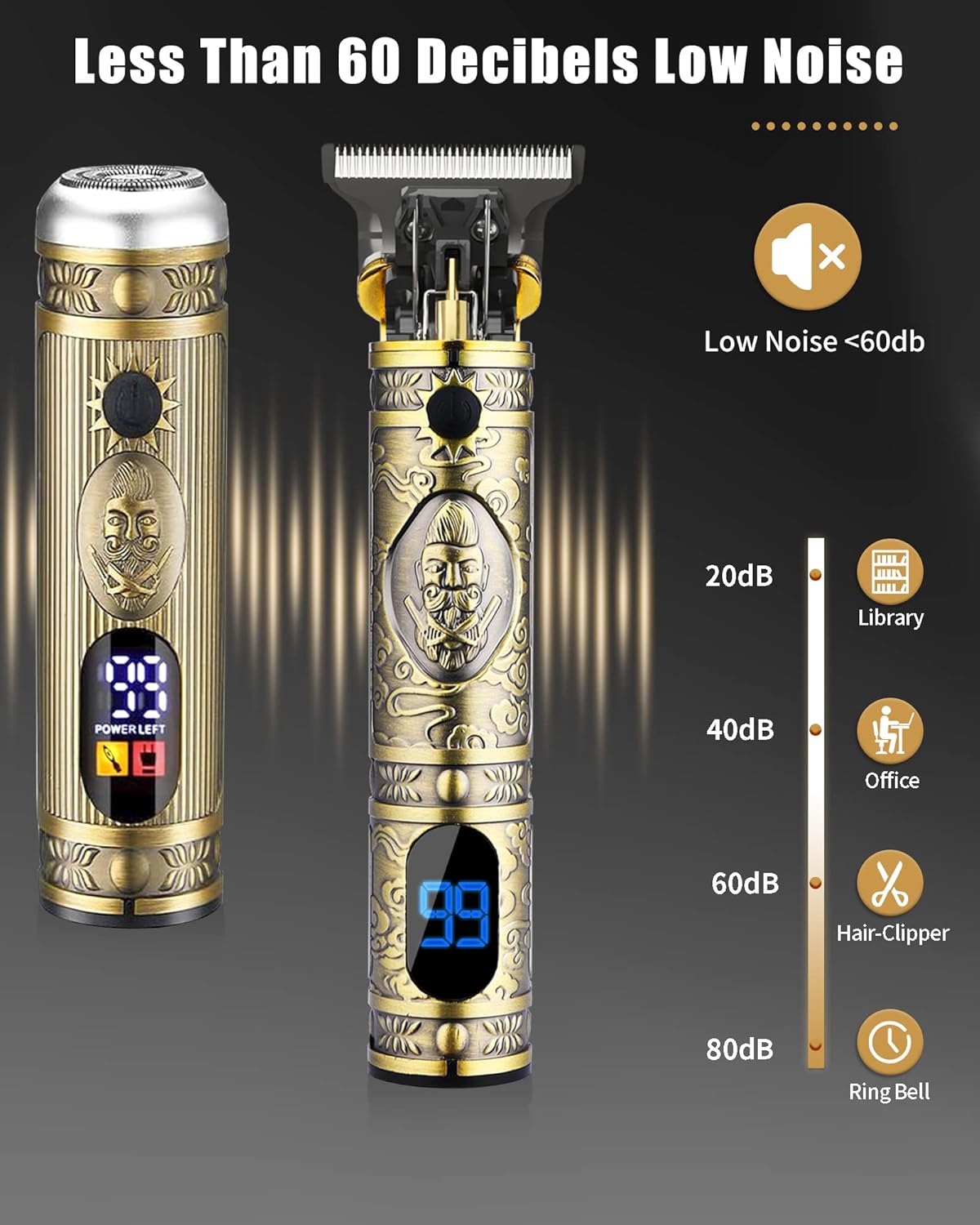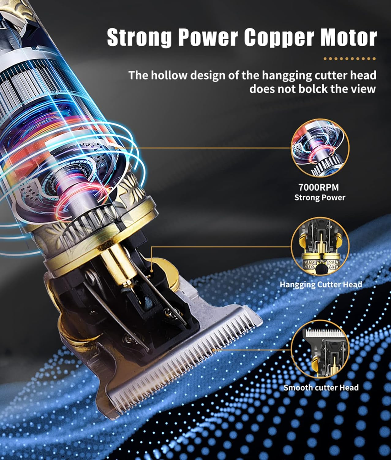 【POWERFUL MOTOR & LOW NOISE】Equipped with a high-performance motor (Speed: 6500-7000 rpm), it can trim all types of hair smoothly, quickly and accurately. And the noise of the hair clippers for men is low, less than 60 decibels, so you can stay away from the trouble of noise.
