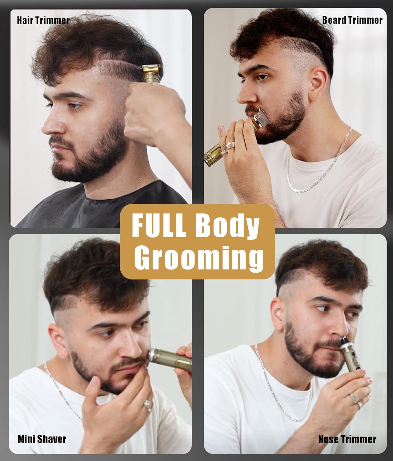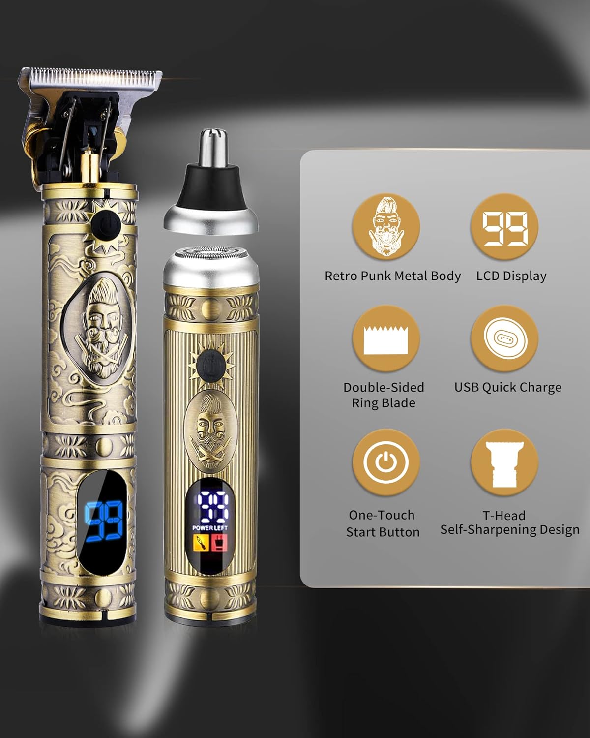 Professional Hair Trimmer for Men & Nose Hair Trimmer Set, Zero Gapped T-Blade Trimmer Rechargeable Shaver Kit, Cordless Beard Trimmer for Men, Men’s Hair Clipper Grooming Kit, LCD