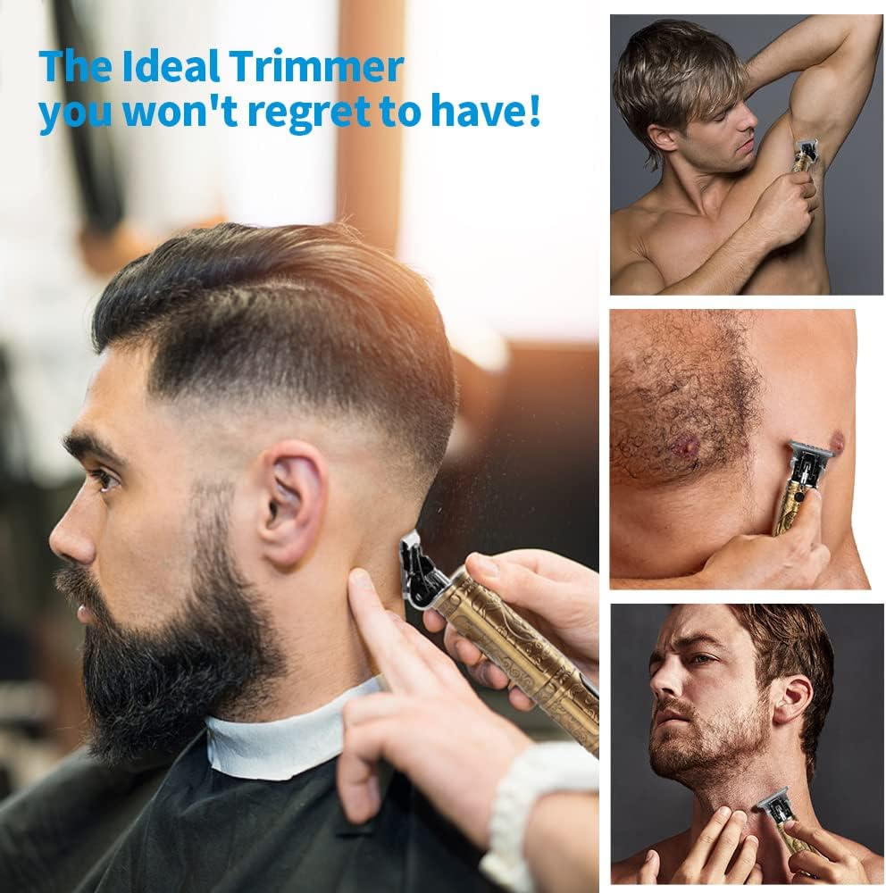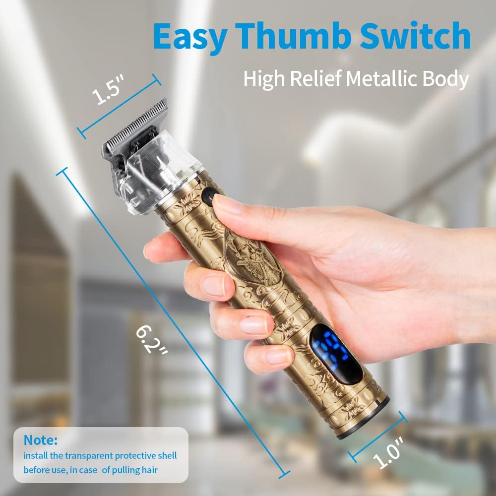 Upgraded Hair Trimmer, Hair Clipper for Men Beard Mustache Edger with LCD Display, Cordless T Blade Liner Gold Hair Shaver, Rechargeable Grooming Kit with Guide Comb