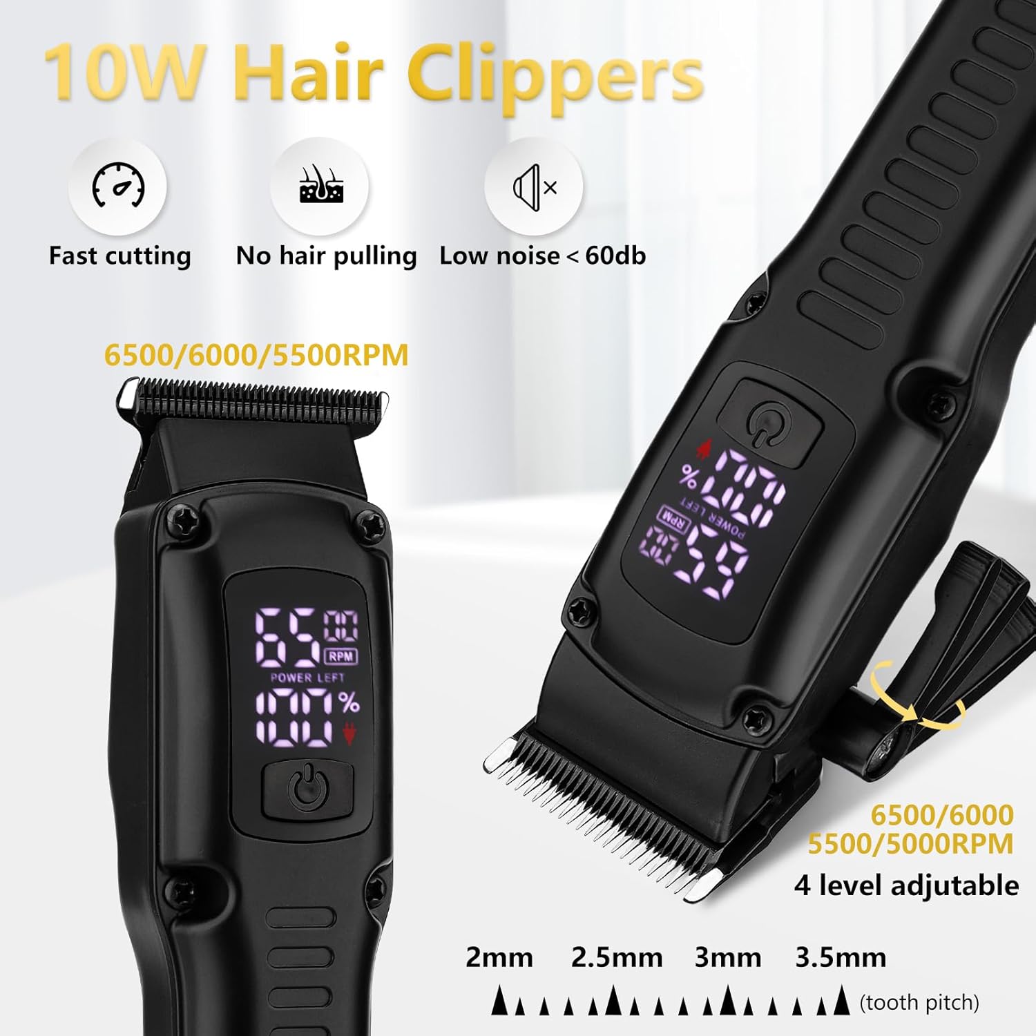 【6500PRM Power & Sharp Stainless Blade】The clippers for men (10W) and foil shaver(5W) are powered by a high-performance motor.The barber clippers have 4 speed adjustable(6500/6000/5500/5000RPM).The mens electric shavers is up to 8500PRM.This cordless clipper for men uses stainless steel sharp blades to cut hair quickly and smoothly without pulling hair.Strong power, low noise, ideal for professional hairdressers and family use.