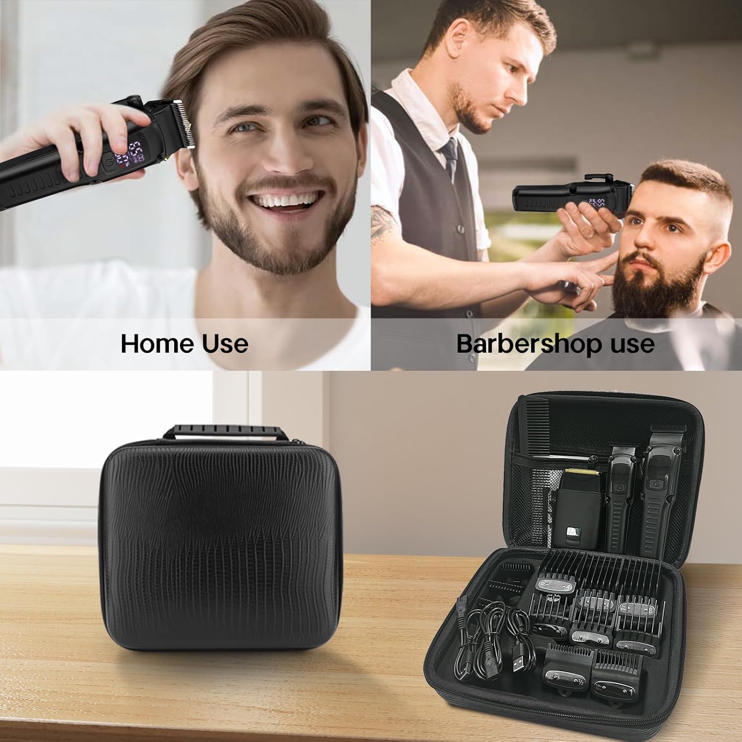 【EVA Bag & Home and Barbershop Use】Premium EVA bag for easy travel use and storage of messy accessories, easy to carry.The barber kit includes 11 guide combs for trimming hair, 2 cleaning brushes, 1 comb, 1 hairdressing cloth, 1 bottle of lube oil, 3 USB cables.The razors and shavers for men set can be given to loved ones as a Father’s Day present, birthday present, Christmas present and Valentine’s Day present.