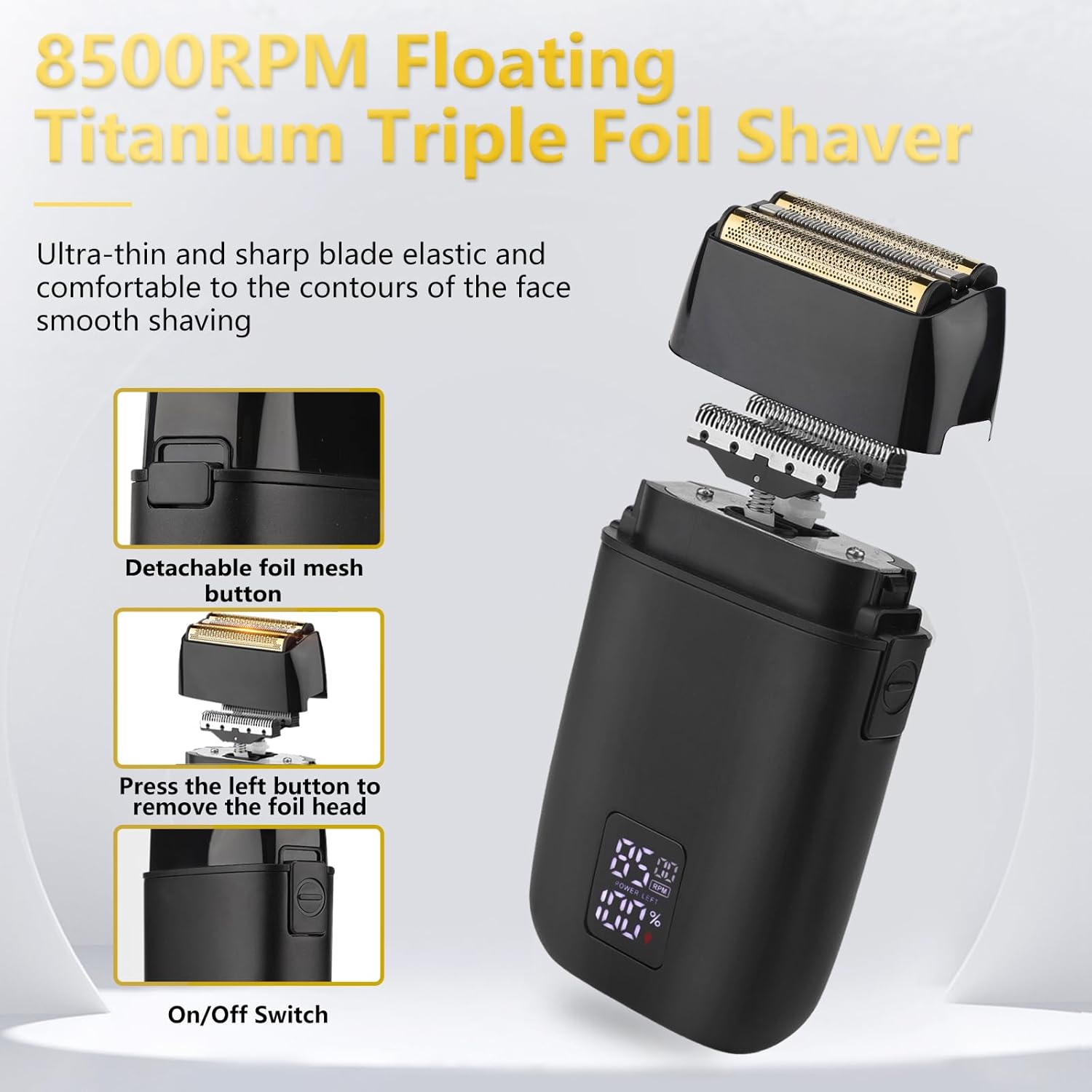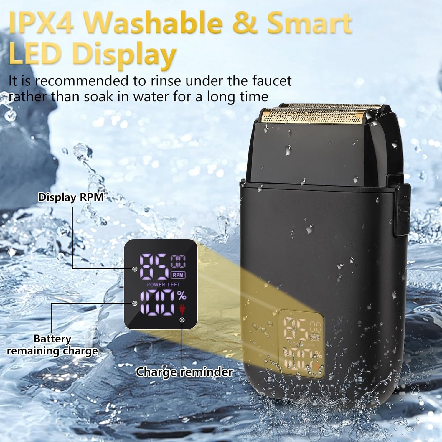 【IPX4 Washable & Ultra-thin Triple Blade】The shavers for men is designed with full body washable technology, this feature allows you to rinse the cutter head in tap water after use for easy cleaning quickly.Triple floating men’s electric shavers head with thin foil mesh, more area to fit the contours of the face, smooth shaving, for a comfortable shaving experience.