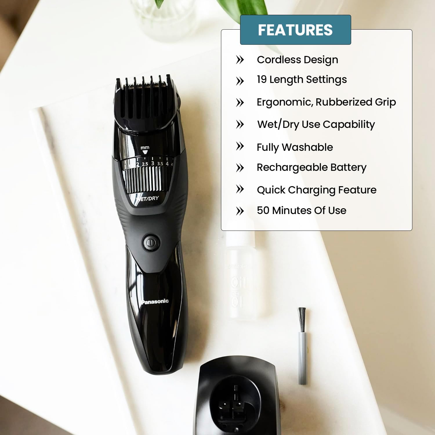 Cordless Convenience: This Panasonic ER-GB42-K offers cord-free operation, liberating you from the constraints of cords and plugs. Its rechargeable battery ensures you can groom anywhere, anytime, making it perfect for home use or while traveling.