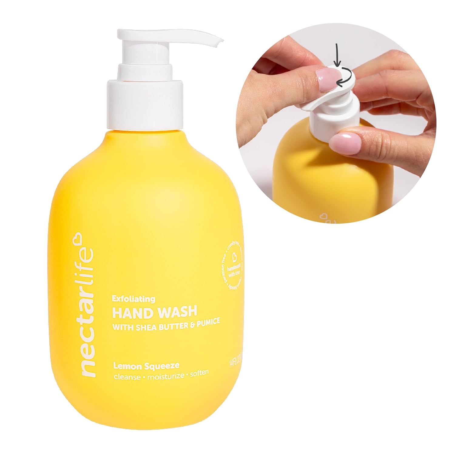 Nectar Life Hand Wash 14oz, Exfoliating and Moisturizing Hand Soap with Volcanic Pumice, Jojoba Oil & Shea Butter, Lemon Scent