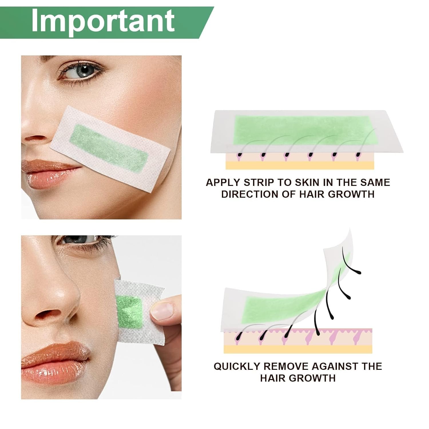 Facial Wax Strips, 100 Pcs Wax Strips for Facial Hair Removal for Women, Waxing Strips for Face, Eyebrow, Upper Lip, Chin and Cheek Hair Remover, Waxing Kit for All Skin Types