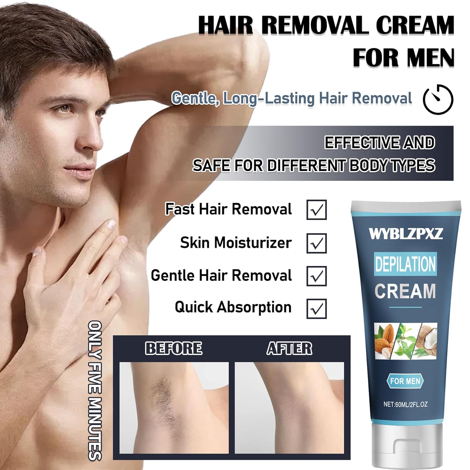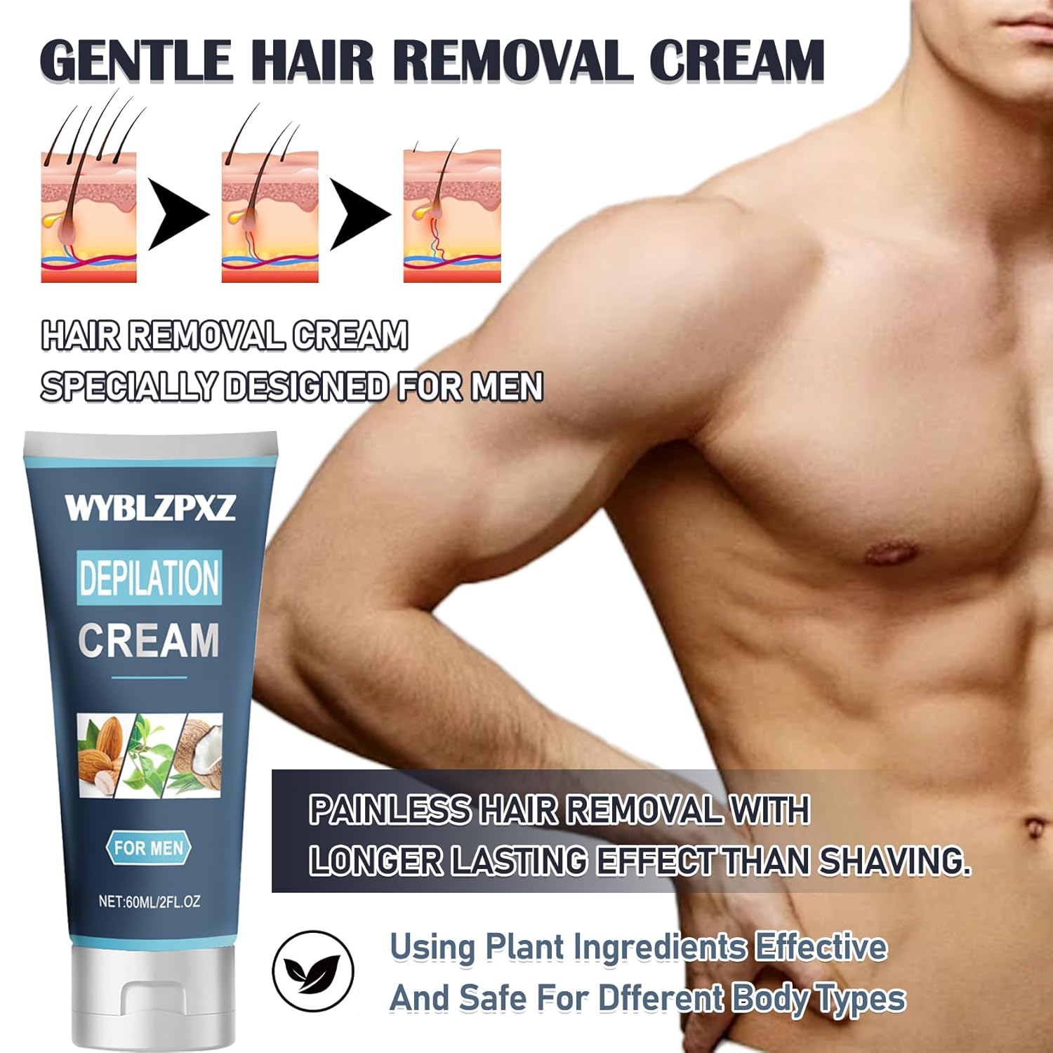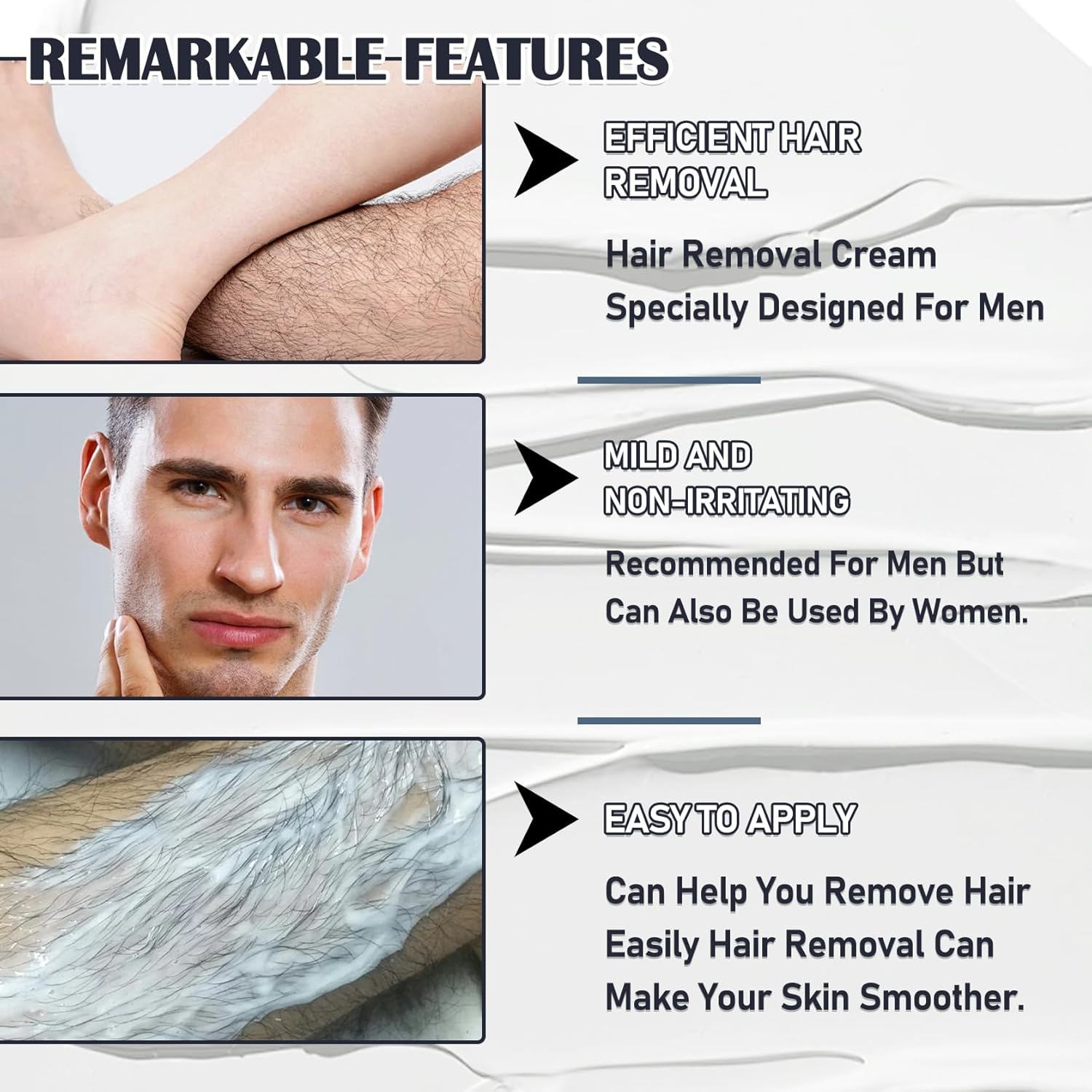 Mens Hair Removal Cream for Body & Face,Moisturizing Flawless Male Hair Remover for Unwanted Coarse Body Hair,Intimate/Private at Home Men’s Depilatory Cream for All Skin Types