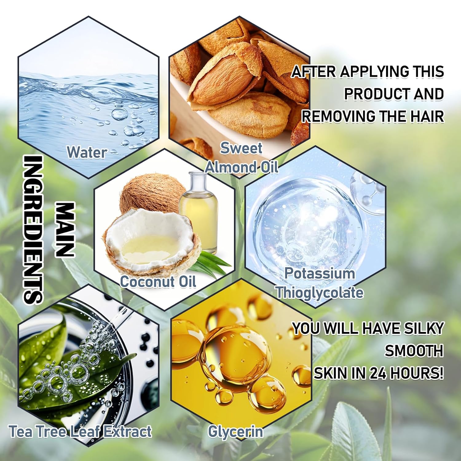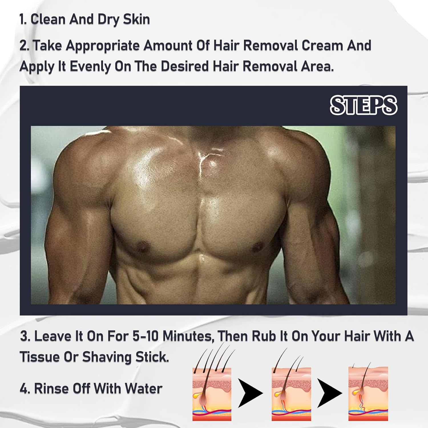 🍒【Long-Lasting Moisturizing】Mens hair removal cream containing gentle moisturizing ingredients,it not only removes hair effectively,but also provides deep moisturization to your skin,so that you can keep your skin moisturized even after hair removal.