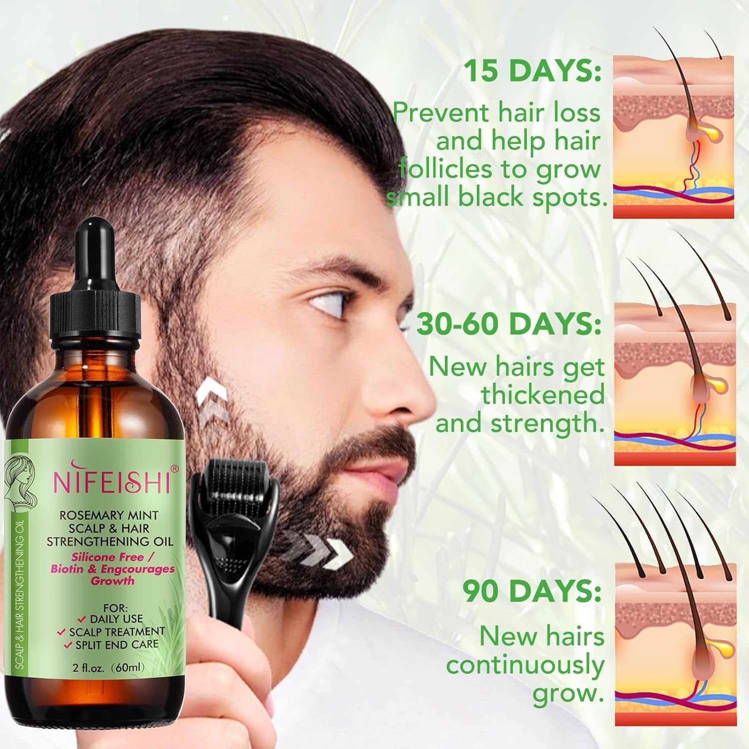 Rosemary Hair Growth Oil, Rosemary Mint Strengthening Rosemary with Biotin for Thinning Hair Strengthening Scalp Health Promotes Hair Regrowth, Rosemary for Hair Loss for Women Men