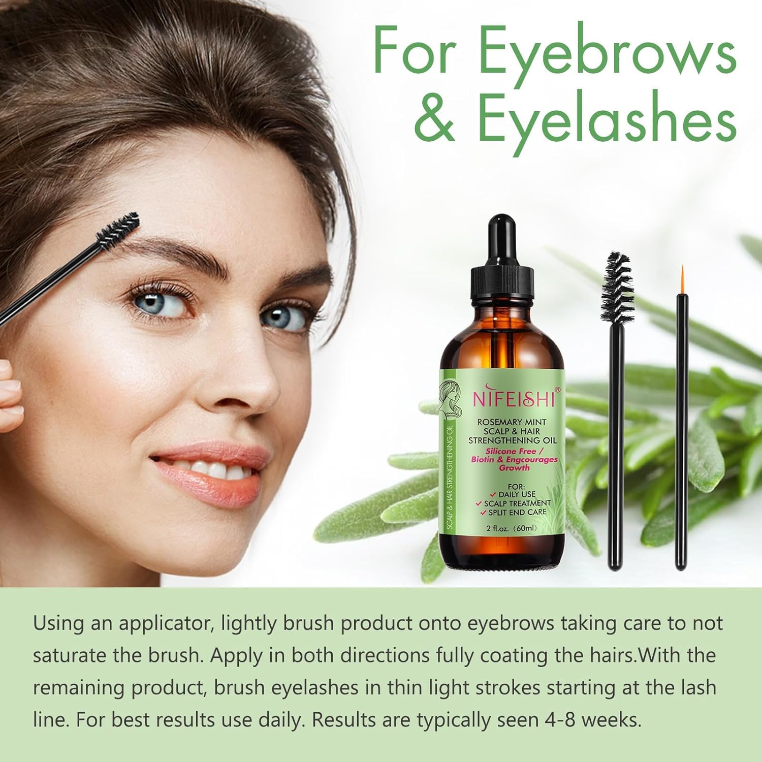 Organic Rosemary Oil for Hair Growth 2.02 Fl Oz with the Roller, Rosemary Mint Scalp & Hair Strengthening Oil with Biotin & Essential Oils, for Eyelashs, Eyebrows,Skin Care, All Hair Types