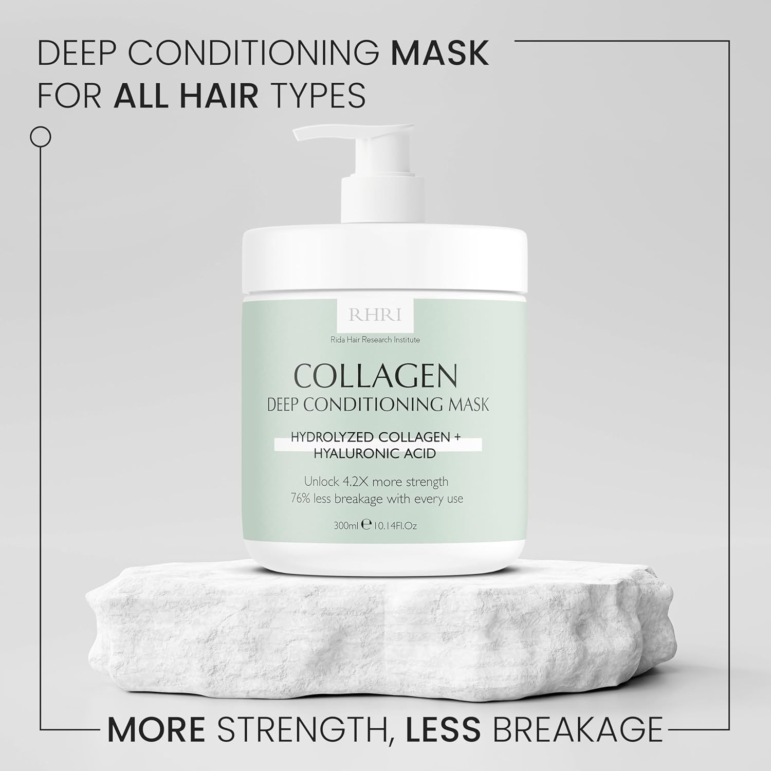 Introducing the pinnacle of hair care innovation from Rida Hair Research Institute: our Collagen Deep Conditioning Hair Mask with Hyaluronic Acid. Meticulously formulated and crafted with precision, this revolutionary hair mask represents the culmination of cutting-edge science and nature’s finest ingredients. Our advanced formula harnesses the combined power of collagen and hyaluronic acid to deliver unparalleled benefits for your hair. Collagen, renowned for its ability to strengthen hair fibers, works in harmony with hyaluronic acid, a potent moisturizing agent, to deeply nourish and fortify each strand from the inside out. Experience an intensive strength boost like never before with our hair mask, boasting a remarkable 4.2x increase in hair strength. Bid farewell to breakage, split ends, and damage caused by daily styling, heat exposure, and environmental stressors. Our deeply conditioning formula penetrates deep into the hair shaft, fortifying the hair cuticle and protecting against future damage. Join the ranks of millions who have propelled our hair mask to viral stardom on TikTok. From beauty influencers to everyday users, our mask has captivated hearts and garnered widespread acclaim for its transformative effects. Dermatologists also recommend our mask for its dermatologist-approved ingredients and proven efficacy in promoting hair health and vitality. Tailored to address the specific needs of dry and damaged hair, our mask delivers intensive hydration and revitalization. Whether your hair is suffering from the effects of heat styling, chemical treatments, or environmental aggressors, our mask replenishes moisture levels, restores elasticity, and enhances overall hair health. Suitable for all hair types and textures, our versatile mask caters to the diverse needs of individuals. Whether you have curly, straight, thick, or fine hair, our mask provides comprehensive care and nourishment, ensuring that every strand receives the attention it deserves. Transform your hair care routine with Rida Hair Research Institute’s Collagen Deep Conditioning Hair Mask with Hyaluronic Acid. Unlock the secret to healthier, stronger, and more radiant hair, and discover the unparalleled benefits of our advanced formula today.