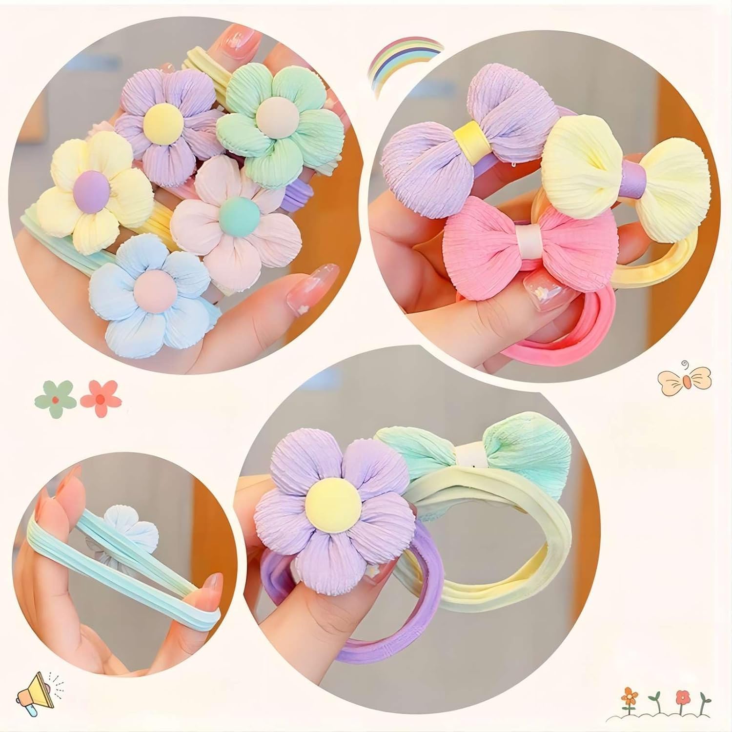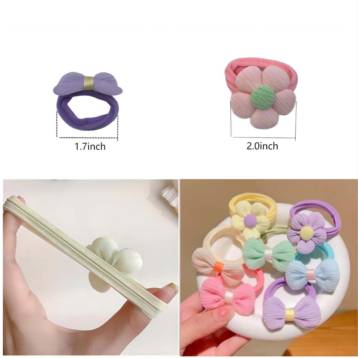Fashionable Design:24 pcs toddler hair ties with bows and flowers style,each style designed according to the preferences of children,have 6 colors,pink,yellow,blue,purple,beige,and pink.Candy colors and fashion pretty design are popular among baby girls, toddler girls, kids, little girls and teens.