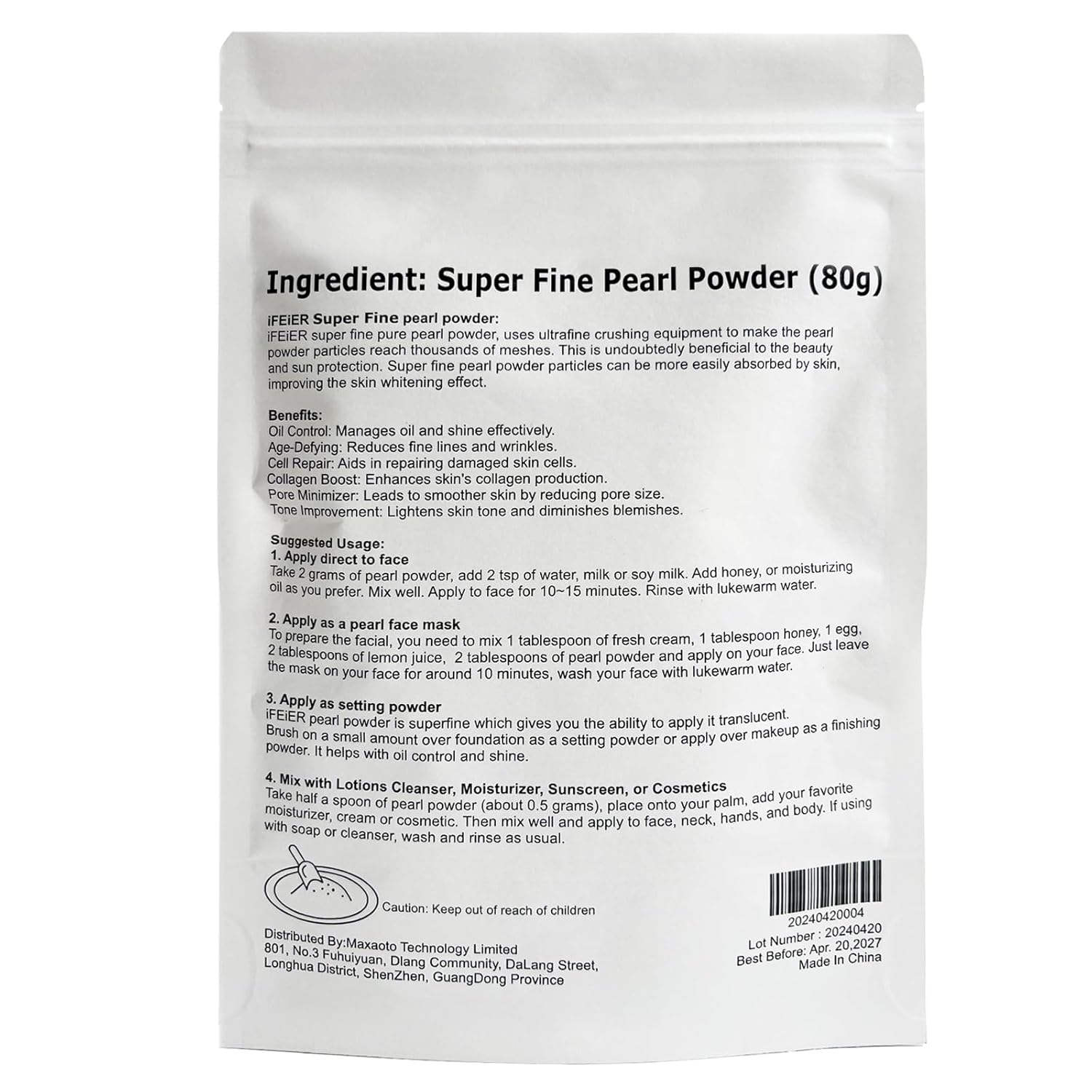 Double layer packaging protection.iFEiER Pearl Powder 80g(2.82oz), include one measuring spoon inside the package.