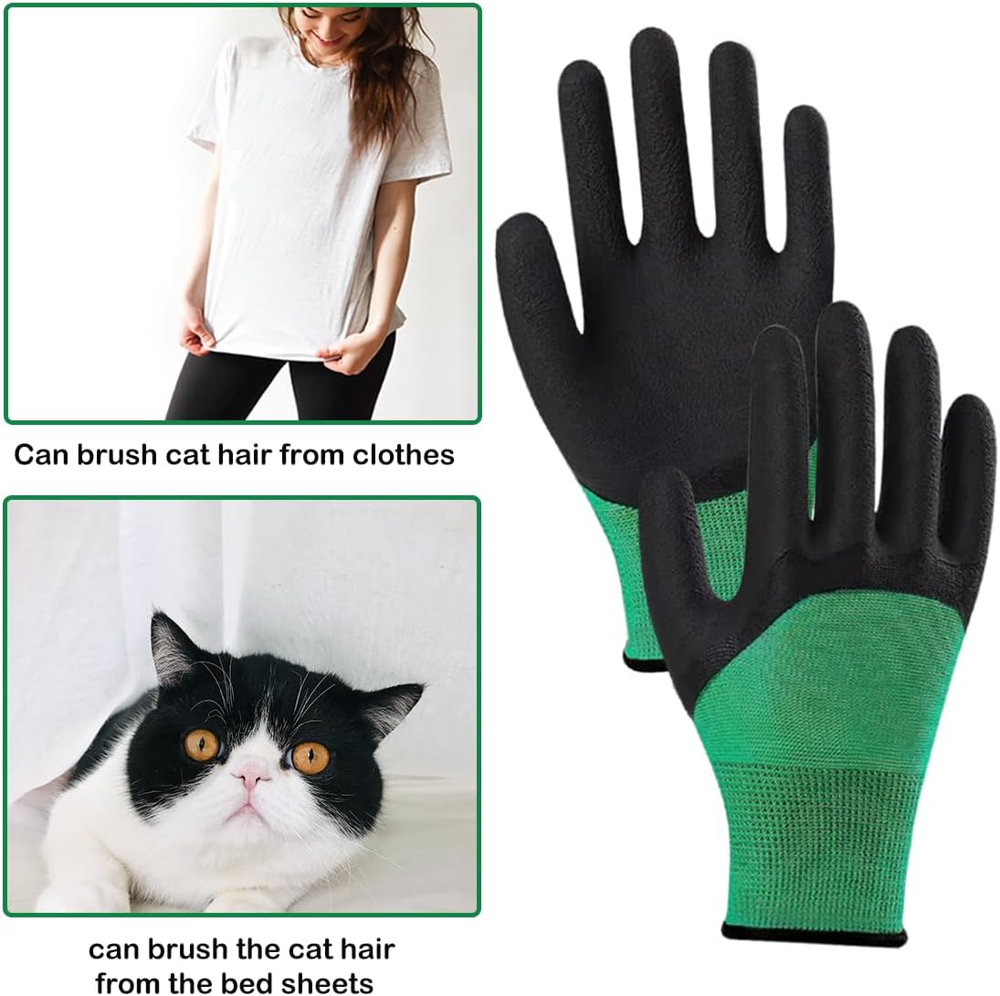 【Multifunctional】: Cat brush glove can not only remove cat hair from clothes, sofas and bed sheets, but also be used as farming and weeding gloves to reduce hand fatigue and protect hands from injury.