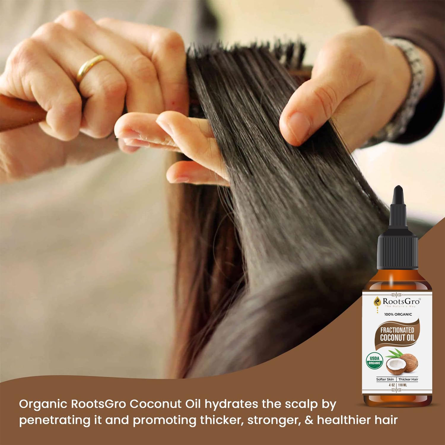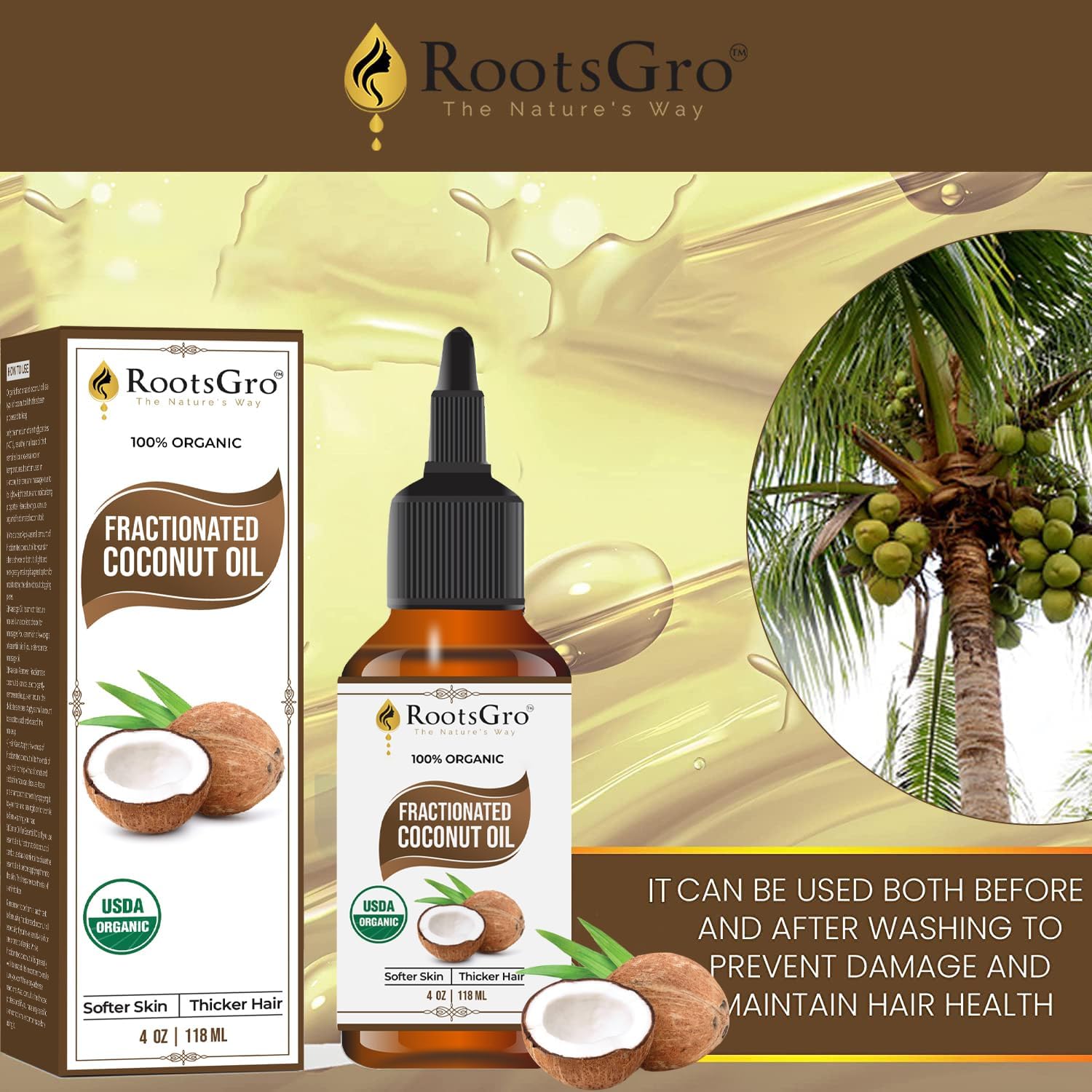 Supports Thicker Hair Health: Common in most hair care products, Organic RootsGro fractionated Coconut Oil hydrates the scalp by penetrating it and promoting thicker, stronger, and healthier hair. Since it is easier to use and apply than conventional coconut oil, fractionated coconut oil maintains its liquid state and all of its health benefits.