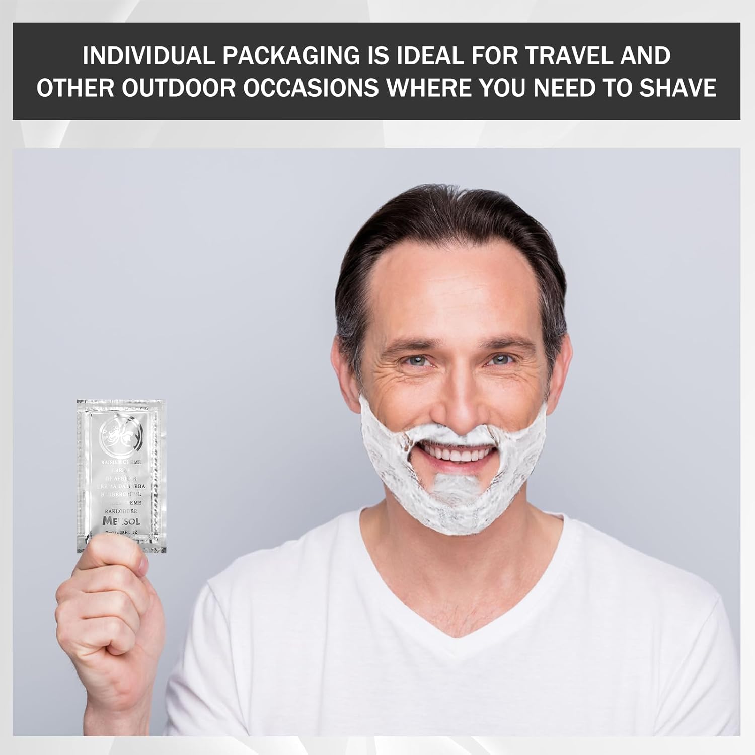 Universal Suitability: our shaving cream travel works with most skin and hair types; Regardless of whether your skin or hair is thick, thin, coarse, or fine, you can expect satisfying results from our sachets