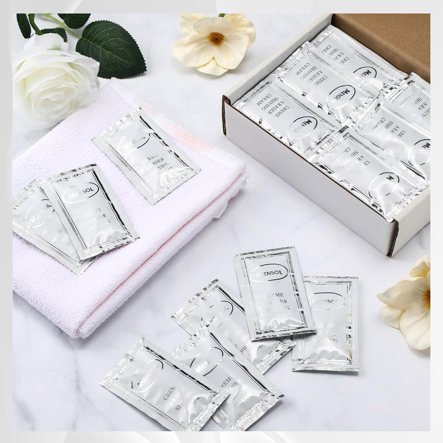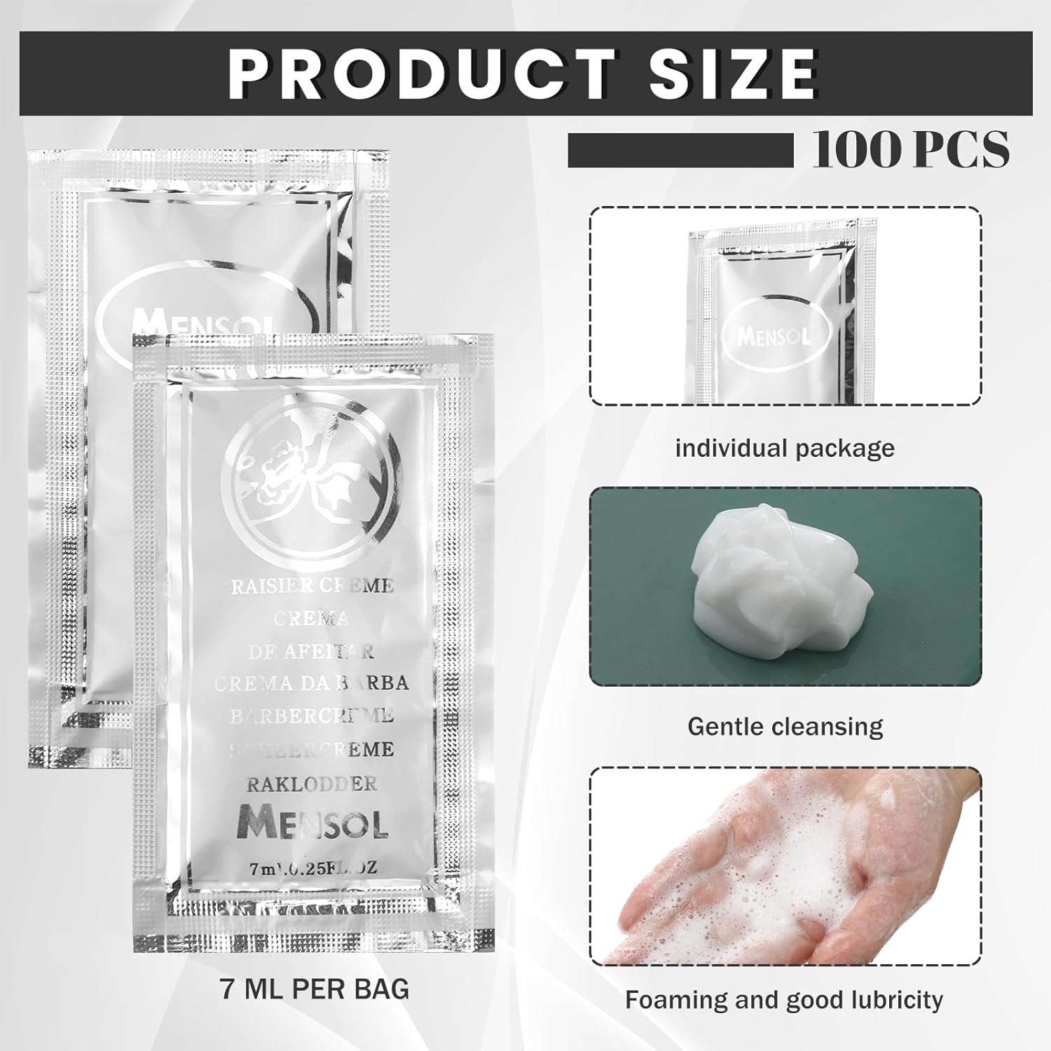 100 Pcs Men Shaving Cream Bulk 0.25 oz Travel Size Disposable Individually Wrapped Shave Cream Sachet Toiletries Single Use for Hotel Shelter Camping Travel Homeless Airbnb