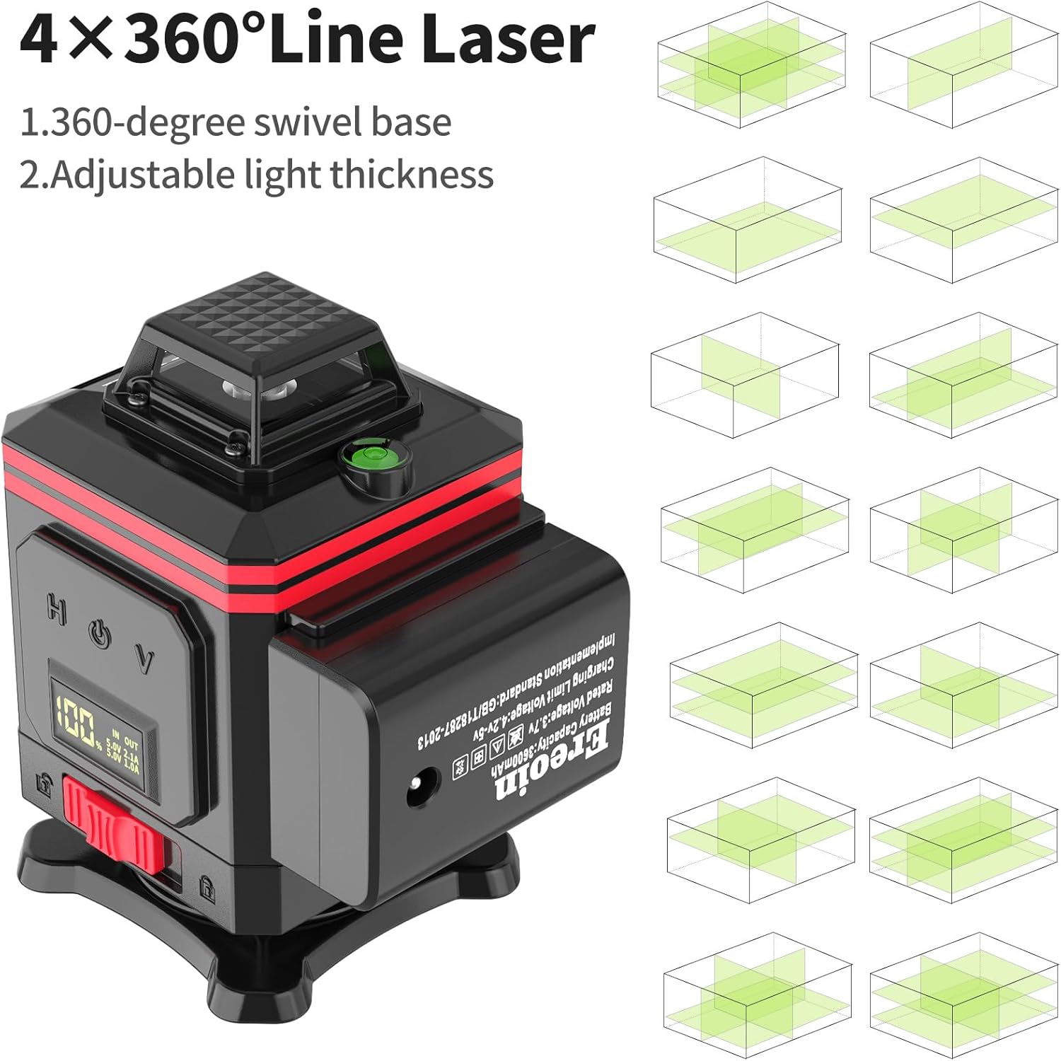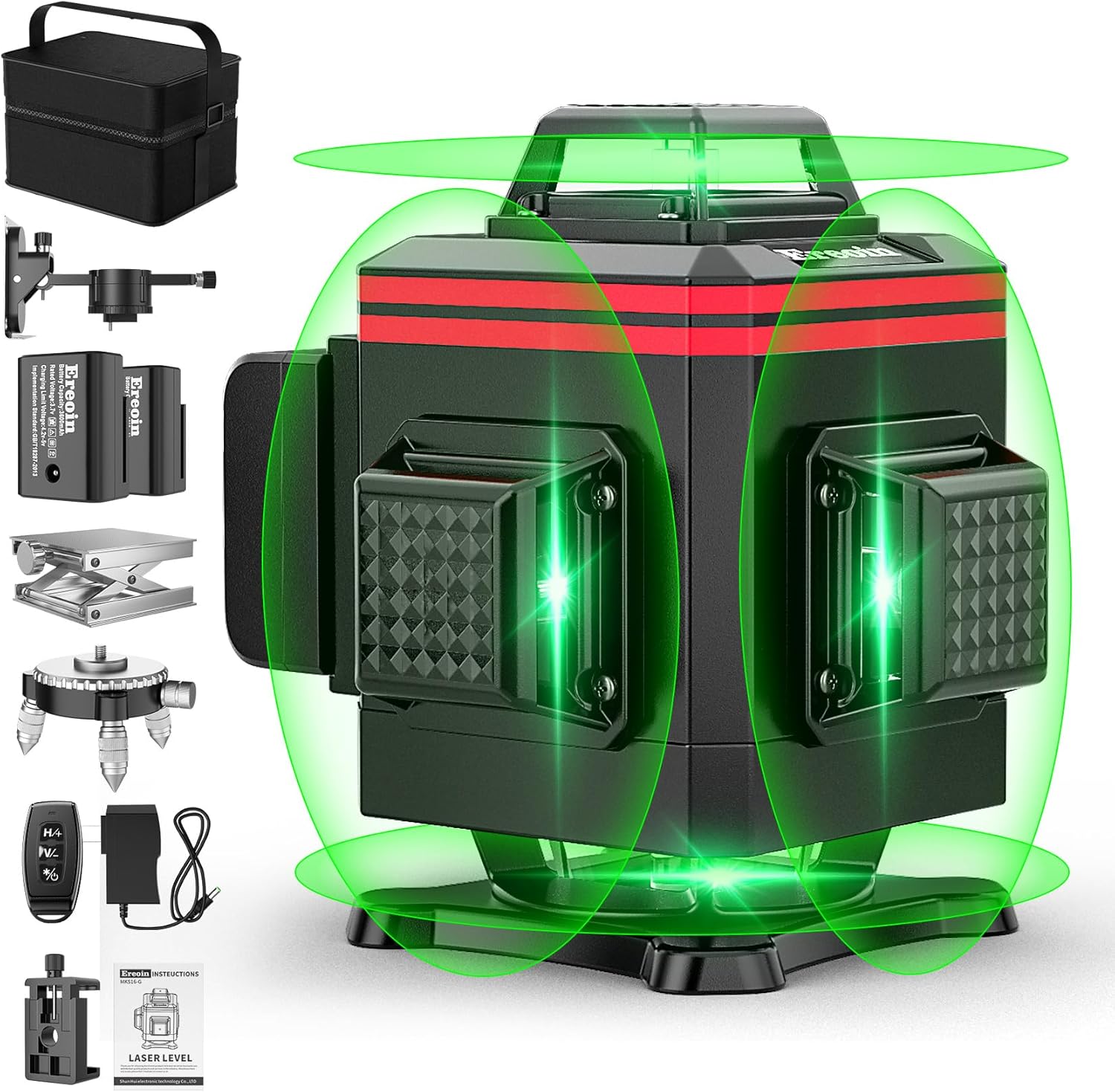 16 Lines Laser Level 4×360° Self Leveling Green Laser Level, 4D Green Cross Line for Construction and Picture Hanging,Laser measurement calibration tool,with 2 Rechargeable Battery and Tool Kit