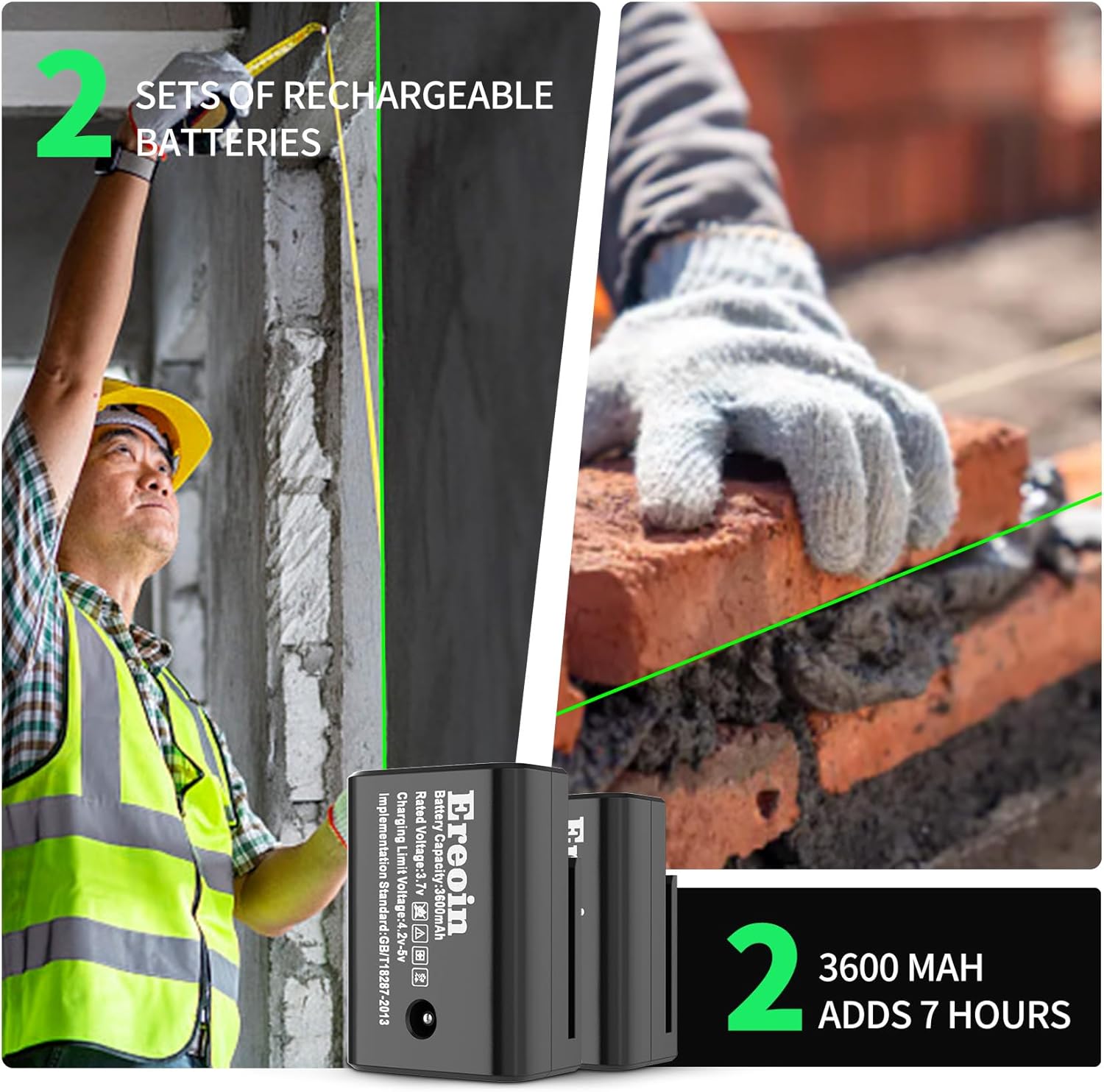 -🎯【High Visibility and Accuracy】The brightness of the green laser horizontal line is 5 times that of the red beam, providing a working distance of up to 200 feet, perfect for outdoor use. Safety Class II, <5mW power output.