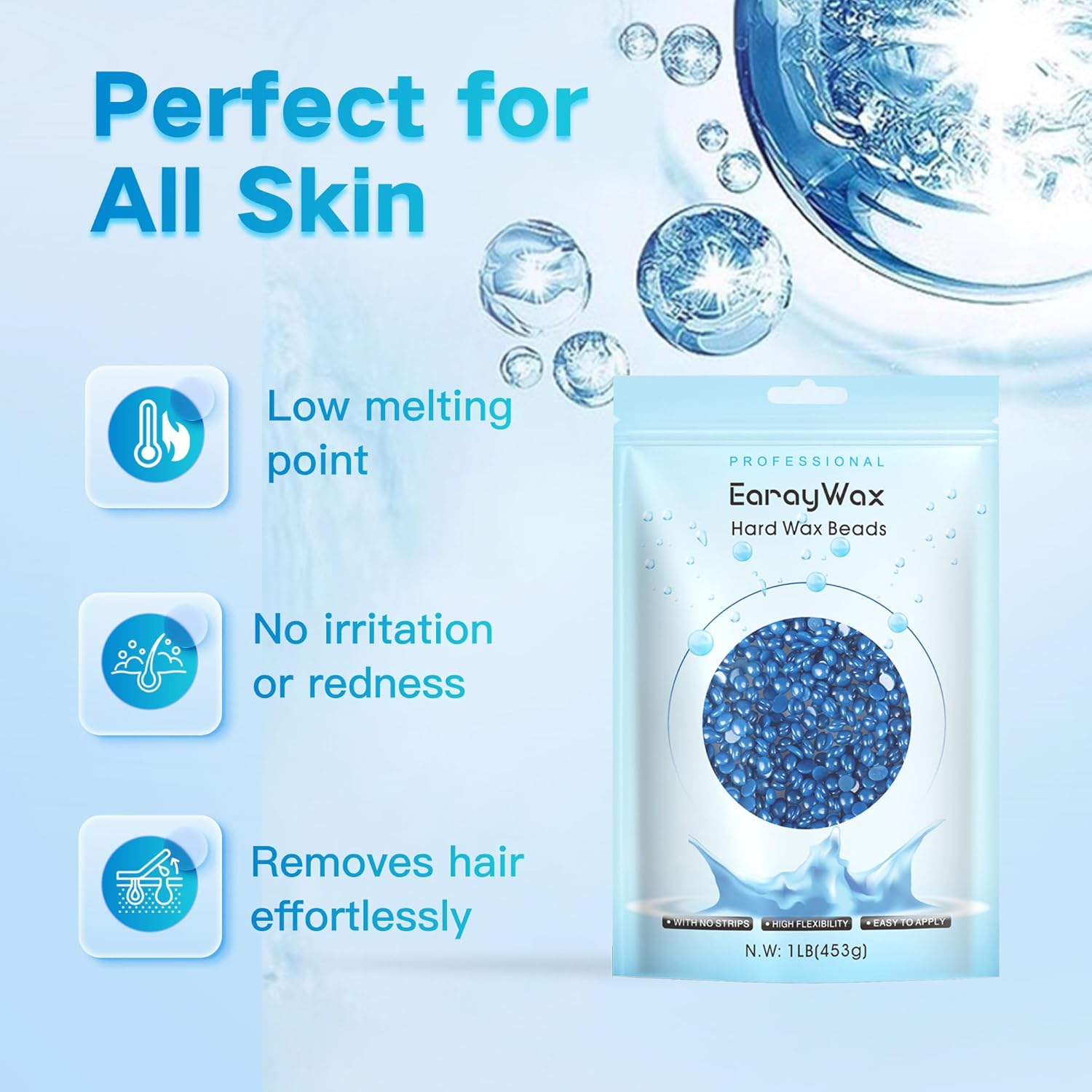 【GENTLE FORMULATION】Earaywax hard wax beans is made of polymer blend resin and natural ingredients and has a stringy quality that allows for it to not break and be brittle like other beads. It can minimizes skin irritation, redness, and pain by maximizing waxing comfort.