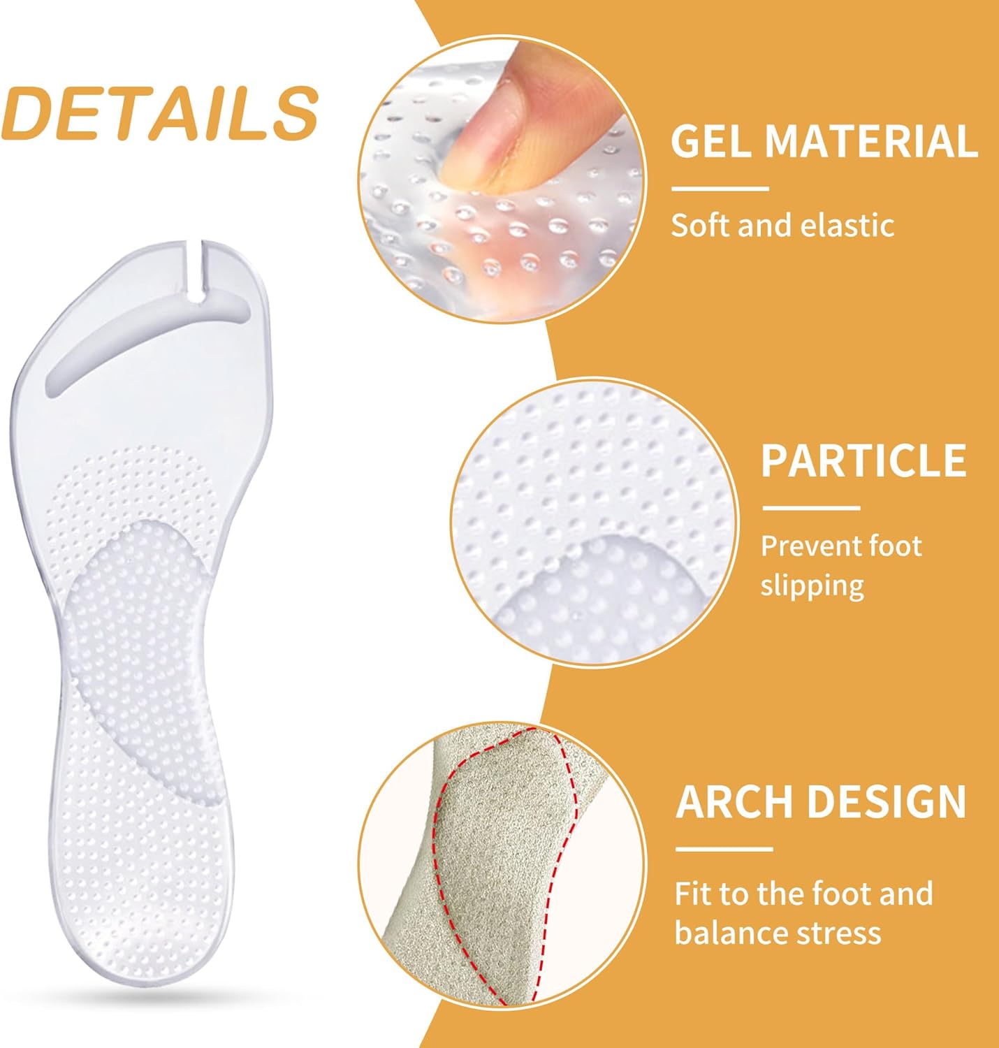 2 Pairs Gel Arch Support Cushion Insoles Adhesive Silicone Flip Flop Thong Inserts Invisible Slim Inserts Pain Relief Anti-Slip Shock Absorption Plantar Fasciitis